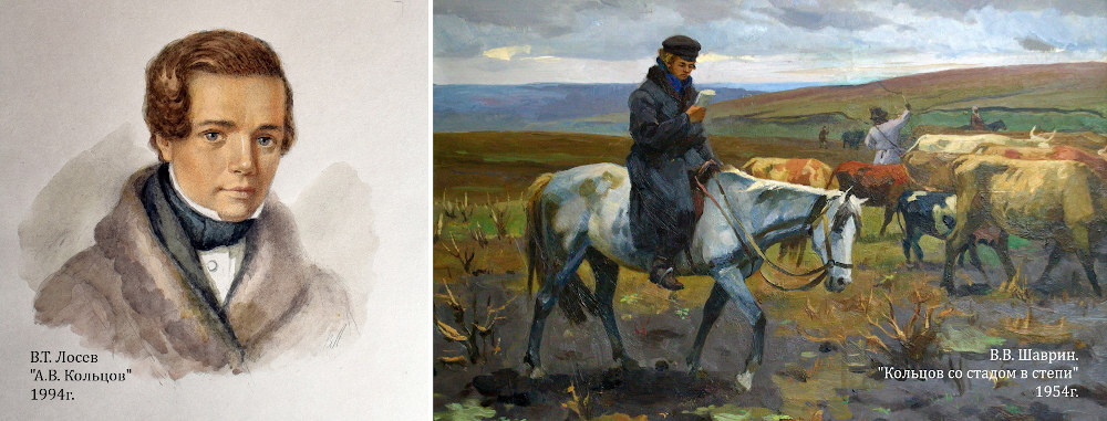 В 16 лет на базаре он покупает сборник стихотворений популярного поэта Ивана Дмитриева. Эта книга буквально зажгла желание Алексея сочинять стихи. Первое его стихотворение называлось «Три видения». Через два года в тетради, озаглавленной «Упражнения Алексея Кольцова в стихах с 1826 года с октября 1 дня. Выбранные лучшие и исправленные. Переписано 1827 года, марта 20 дня», уже было записано 36 стихотворений. Свои стихи он читал другу, семинаристу Андрею Серебрянскому, его мнению очень доверял. Кольцов ему разрешал редактировать и уничтожать те тексты, если Андрей считал их неудачными.
