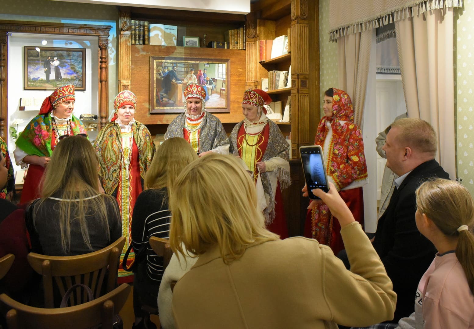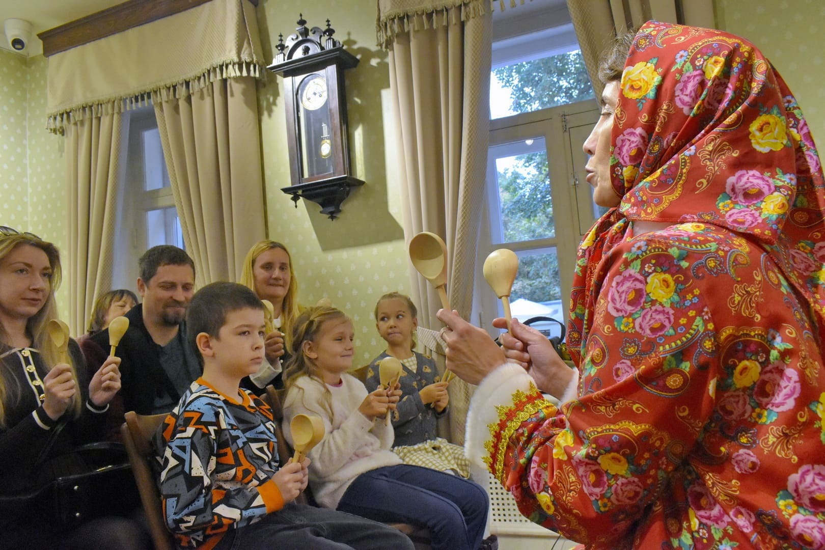 Продолжился «Экскурсионный флешмоб» экскурсией по дому-музею и весёлой программой «Без ложки — не обед, без стука — не концерт». Участники узнали историю деревянной ложки, освоили приёмы музыкальной игры с её применением. В завершение «ансамбль ложкарей» исполнил песню «Ах, вы сени, мои сени!»