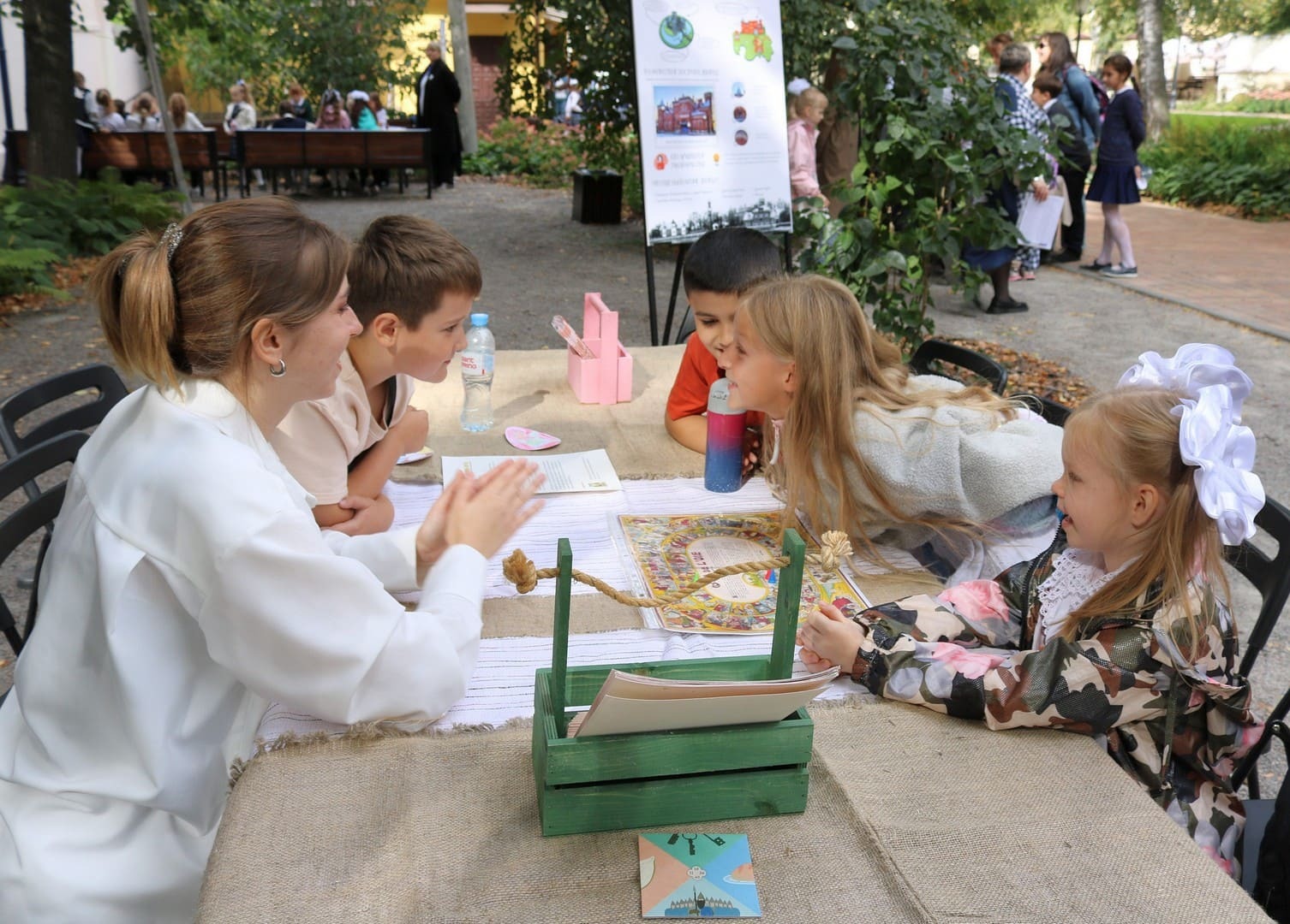 Затем ребята отправились знакомиться с тематическими площадками. Для учеников начальной школы была организована увлекательная программа, включающая квизы, мастер-классы, старинные игры, познавательные беседы и многое другое.