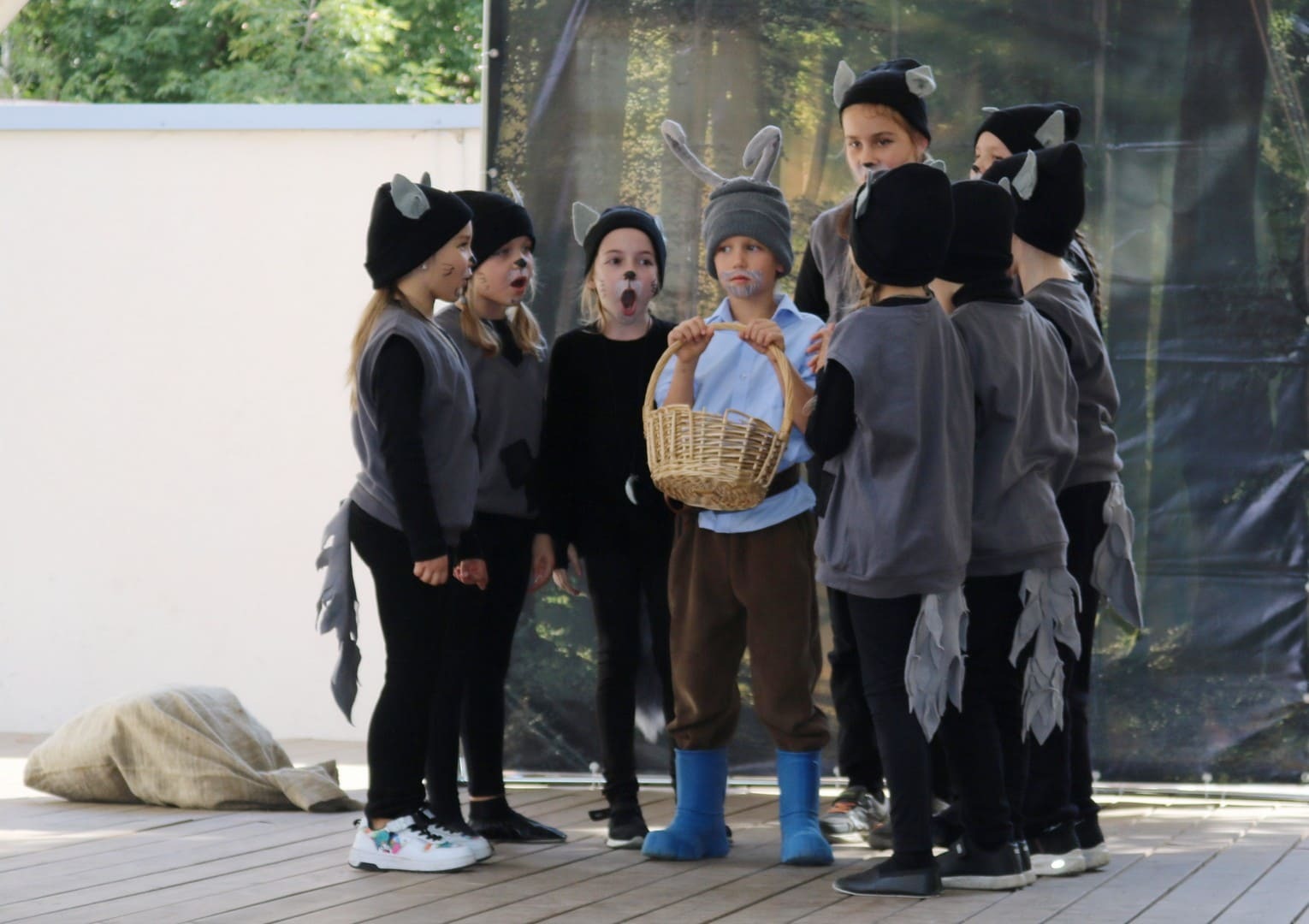 Завершилась первая часть праздника выступлением театра-студии «Белая ворона». Юные актеры представили зрителям замечательный спектакль по пьесе Самуила Маршака «Сказка про козла». На глазах у гостей развернулась история про смышленого козла, который заботится о своих стареньких хозяевах и отважно разбирается со стаей волков в лесу. Гости тепло приняли постановку и наградили маленьких артистов бурными аплодисментами.
