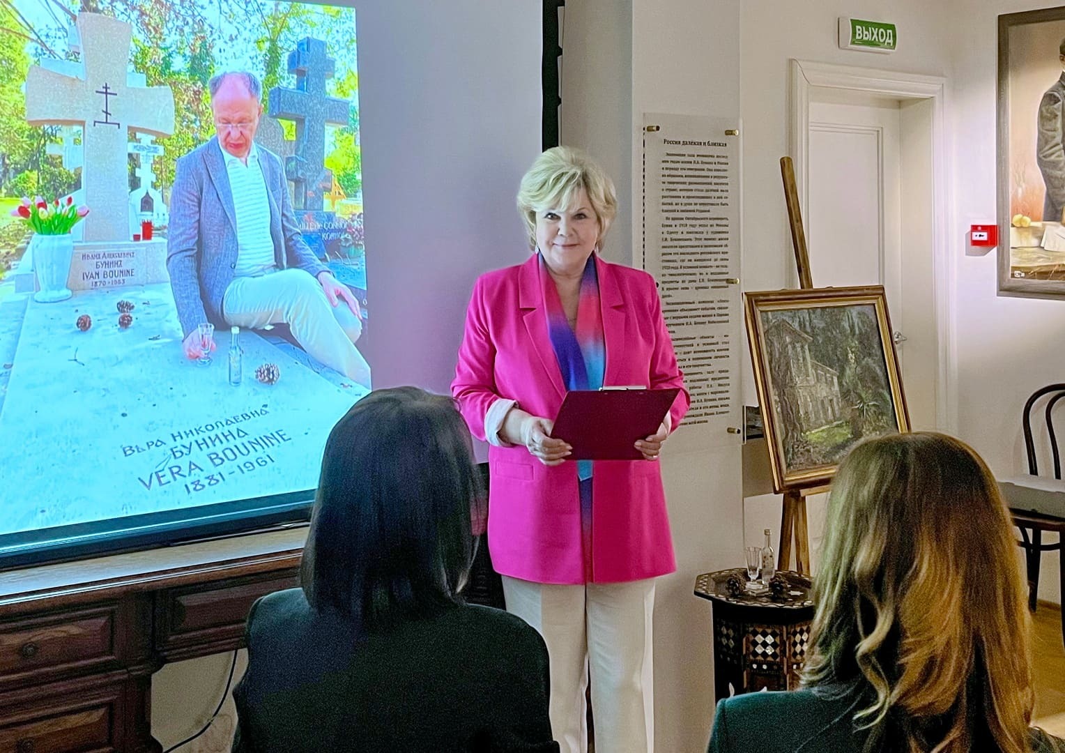 Торжества продолжились 24 сентября в экспозиции Музея И.А. Бунина. Директор Музея имени И.С. Никитина Светлана Деркачева рассказала о ценных подарках к юбилею. В их числе — картина Николая Кожуховского «Грасс, вилла «Бельведер», которая получена благодаря содействию друга литературного музея, общественного деятеля Елены Королевой. Художник изобразил особняк во Франции, где в 1924–1939 годах жил Иван Бунин. Среди символичных даров — сосновые шишки с могилы писателя, привезённая с парижского кладбища Сент-Женевьев-де-Буа известным общественным деятелем, академиком Российской академии художеств, председателем Национального союза библиофилов Михаилом Сеславинским.