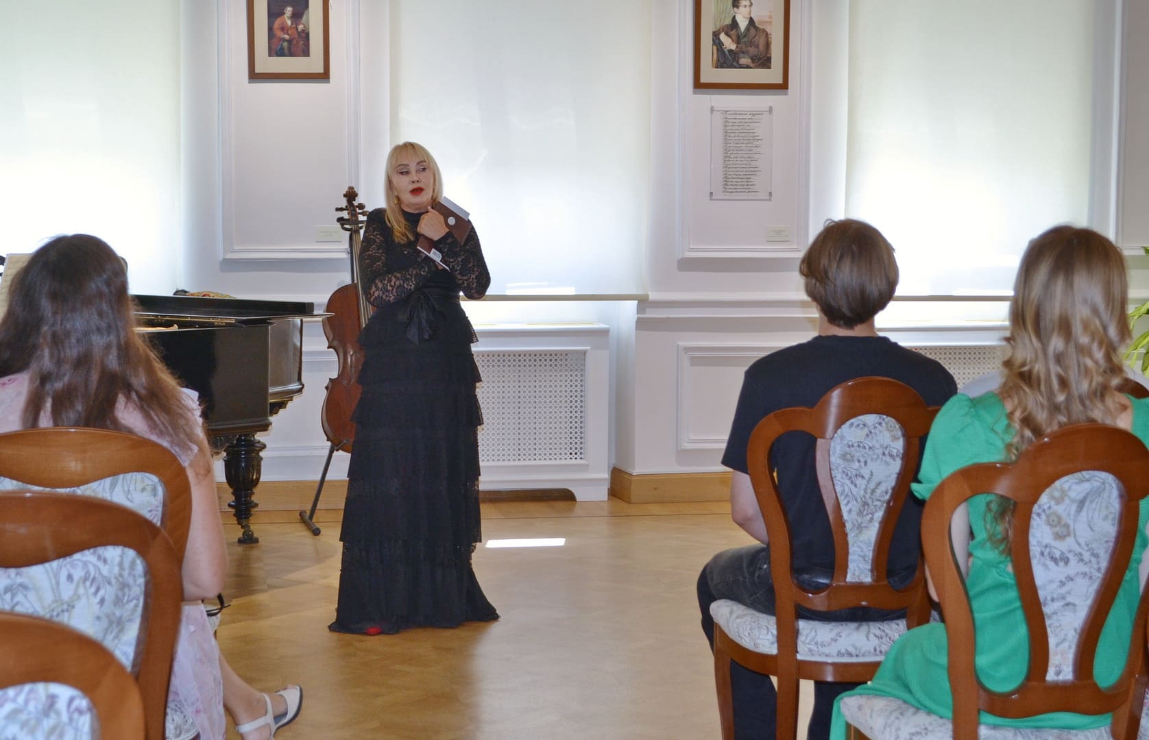 Открыла выставку заведующая отделом музея-усадьбы Яна Цыганкова. Она подчеркнула, что выставочный проект приурочен к 225-летию со дня рождения поэта, является подарком к 100-летию литературного музея и 30-летию Музея-усадьбы Д.В. Веневитинова и входит в цикл программ «Читаем, играем, рисуем Пушкина». Презентационную экскурсию по выставке провела Ирина Кулешова. Затем в каминном зале в исполнении солисток Марии Шайдаковой, Ирины Цупко и концертмейстера Татьяны Матвеевой прозвучали романсы на стихи Александра Пушкина и поэтов пушкинской эпохи. Вокальную программу украсило художественное чтение стихов заслуженной артисткой России Татьяны Шешиной.