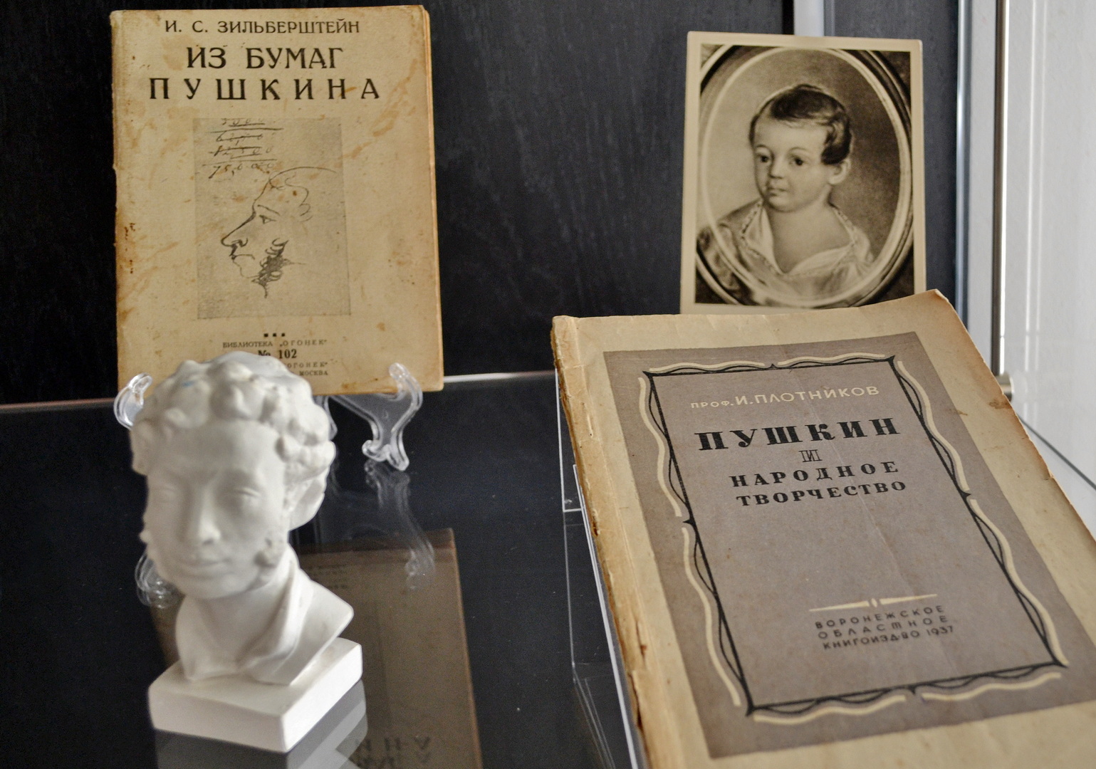 Предметный ряд экспозиции литературного музея И.С. Никитина составляют книжные издания разных лет. Среди наиболее ценных можно выделить книги И. П. Плотникова «Пушкин и народное творчество» 1937 г. и Щёголева А. П. «Пушкин и мужики» 1928 г.