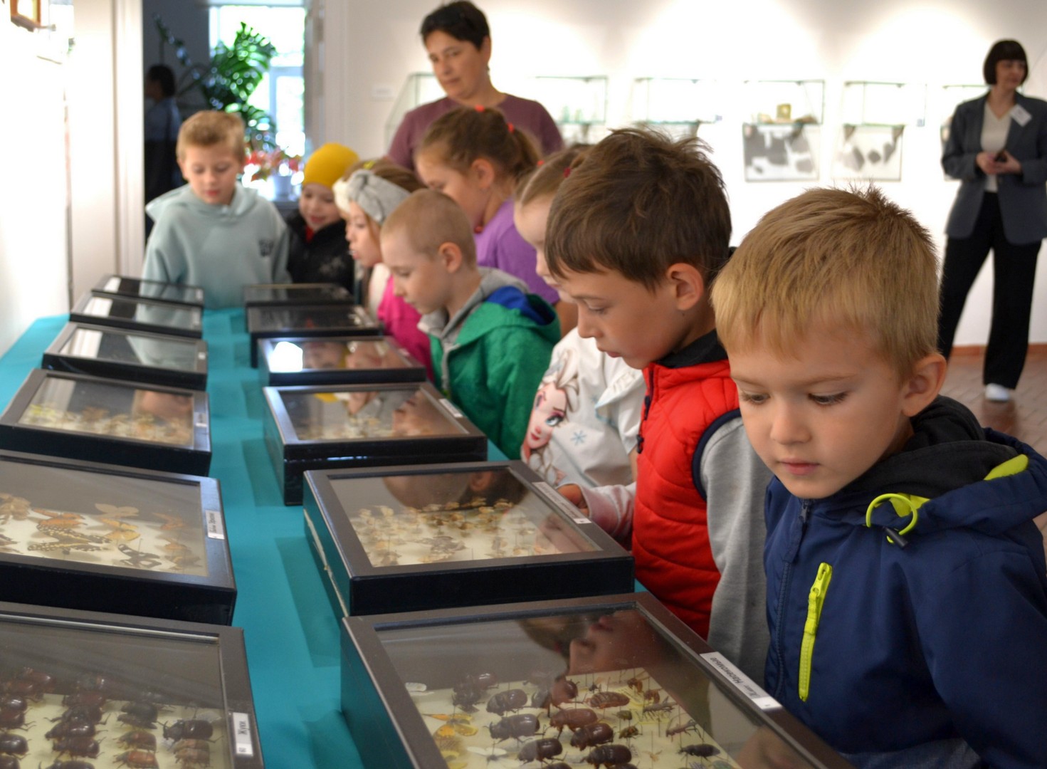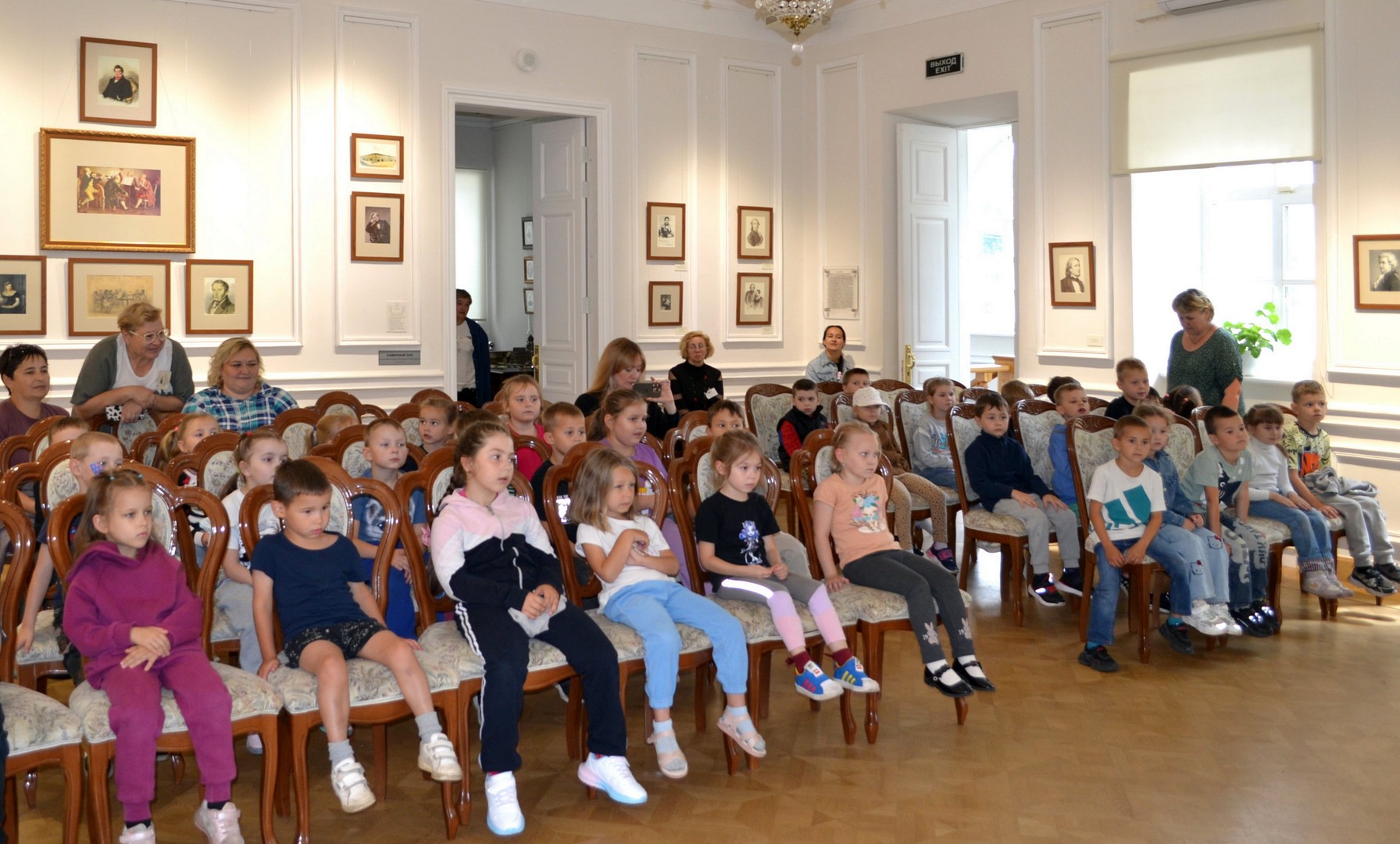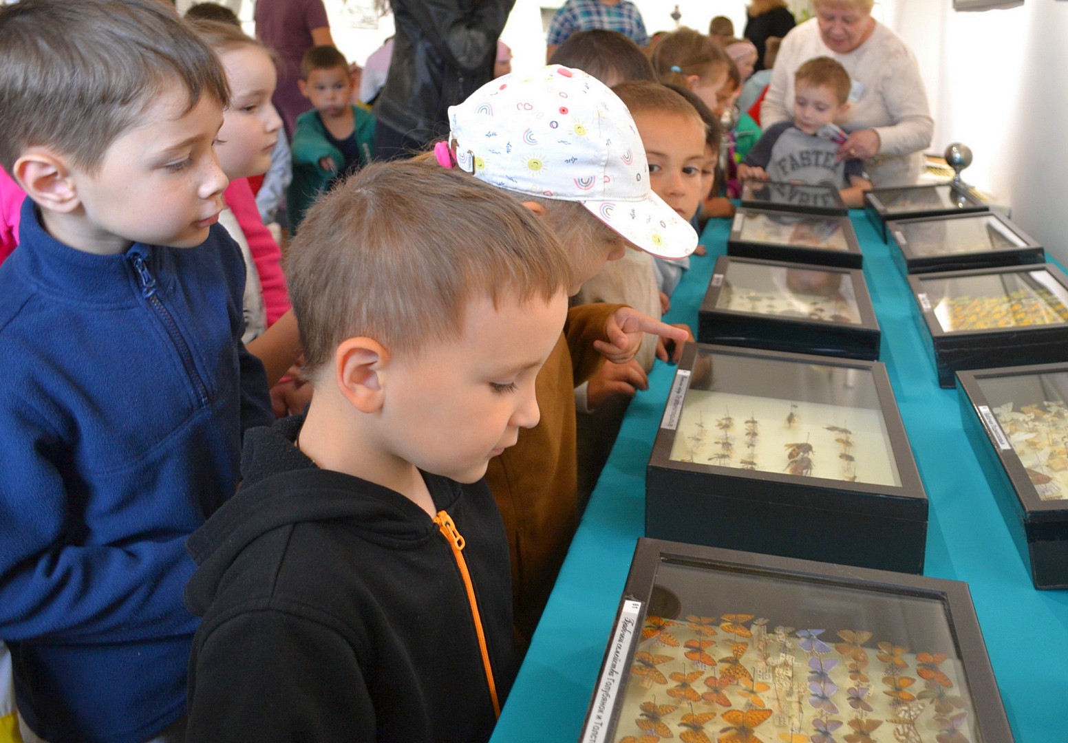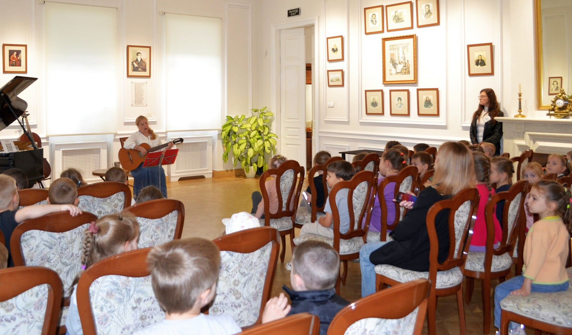Во время экскурсии ребята внимательно разглядывали витрины с бабочками и жуками, узнавая об особенностях их питания, среды обитания и защитных механизмах. В каминном зале для ребят прозвучали веселые детские песни под гитару, которые они с удовольствием спели вместе.