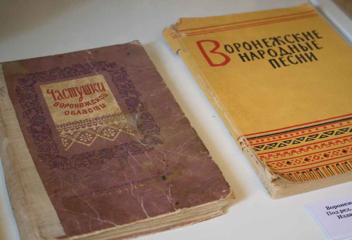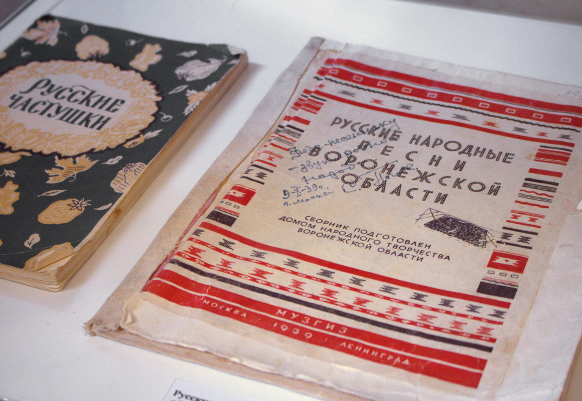 Книги из библиотеки народной артистки СССР М.Н. Мордасовой раскрывают секреты «творческой лаборатории» певицы и говорят о её профессиональных интересах. Открывают экспозицию сборники песен и частушек, записанных от Мордасовой. Их издание в нотах стало возможно благодаря мужу певицы и бессменному аккомпаниатору Ивану Руденко. Дополняют раздел грампластинка с записью частушек и книга «Русские песенницы наших дней» под редакцией фольклориста-музыковеда В.С. Виноградова с главой о М.Н. Мордасовой. Отдельный раздел выставки посвящен фольклору народов СССР и мира. Многие книги были подарены Марии Николаевне поклонниками. Следующая часть экспозиции рассказывает о появлении и развитии жанра частушки. Во второй половине XIX века русский писатель Глеб Успенский закрепил за «народными стишками» современное название. Здесь выставлен сборник его публикаций 1863 – 1913 годов. В начале ХХ века в кругах деятелей культуры было принято пренебрежительно отзываться о частушке, ее противопоставляли «подлинной народной песне». Сборник статей «Концерты М.Е. Пятницкого с крестьянами» (1914) с полемикой о частушках также представлен в разделе. Экспонаты малой витрины выставки показывают частушку как эстрадный жанр сатиры и юмора. Среди книг Мордасовой много изданий стихов этой направленности. Большинство из них – с автографами авторов, например, книга воронежского писателя Е.Г. Новичихина «Два пишем, один в уме…». Здесь также экспонируются издания об артистах, чьё творчество вдохновляло Марию Николаевну: Клавдия Шульженко, Лидия Русланова, актёры советского кино. Завершается выставка экспонатами о сценическом образе частушечницы и значимости ее концертных костюмов. Здесь, в числе других экспонатов, представлен образец народной вышивки и фотография с элементами костюма, сшитого для исполнения частушек «Небылицы». Выставка в музее-квартире М.Н. Мордасовой будет работать до 28 октября.