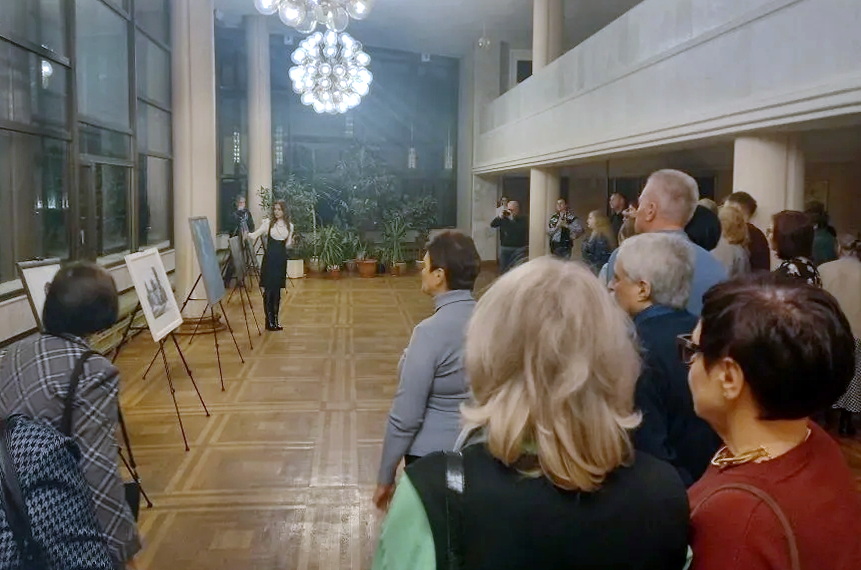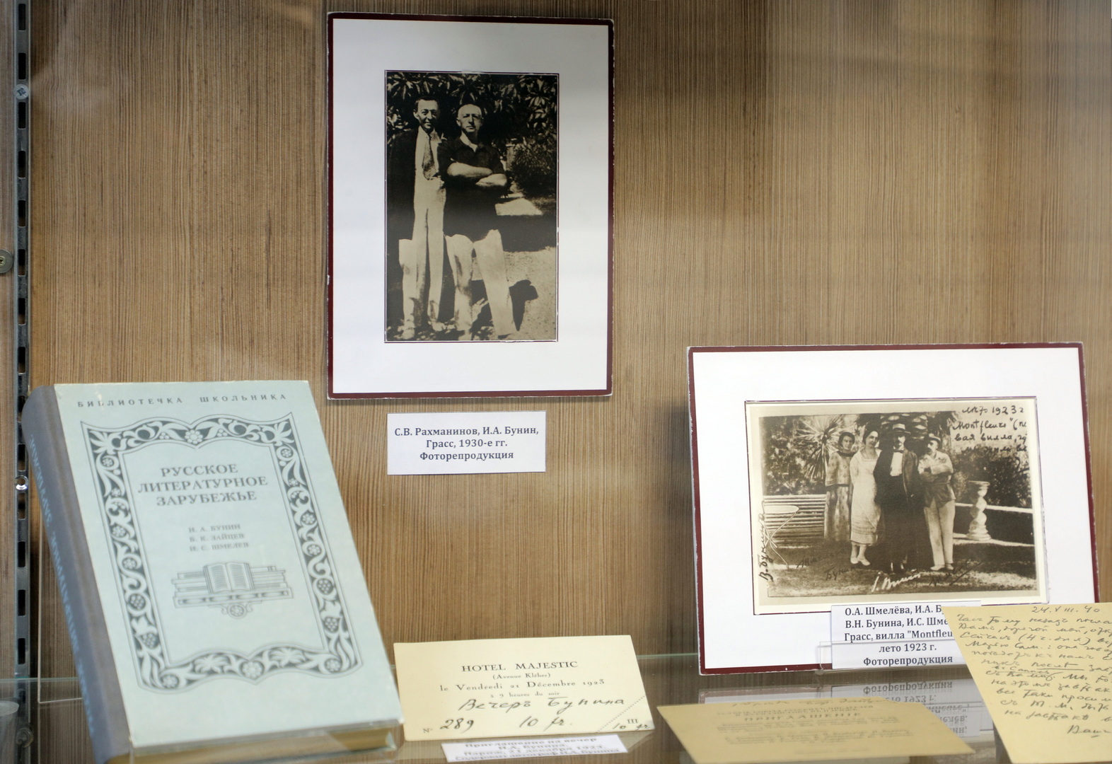 В ходе презентационной экскурсии куратор выставки Вероника Щукина рассказала о творческом пути Ивана Бунина, его окружении на Родине и в эмиграции, литературных кумирах. Несмотря на ранний дебют в печати и обширные творческие связи с корифеями отечественной словесности, известность пришла к классику далеко не сразу. Хотя Бунин был дважды удостоен Пушкинской премии (1903, 1909 гг.) и стал самым молодым академиком Санкт-Петербургской императорской академии наук, в начале ХХ века его произведения не пользовались спросом. Гости узнали, что переломным моментом в судьбе писателя стали «окаянные дни» Октябрьской социалистической революции и Гражданской войны. В это страшное время он принял непростое решение об эмиграции и в начале 1920 года навсегда покинул Родину. Однако, хотя Иван Алексеевич провёл во Франции тридцать три года, его всегда вдохновлял образ родной страны. В эмиграции был создан ряд произведений, образующих своеобразный монолог о Родине: роман «Жизнь Арсеньева» (1927-1929), сборник рассказов «Тёмные аллеи» (1937-1944), документальная книга «Воспоминания» (1950). Именно «за строгий артистический талант, с которым он воссоздал в литературной прозе типично русский характер» и «за строгое мастерство, с которым он развивает традиции русской классической прозы» Нобелевский комитет Шведской академии наградил Ивана Бунина премией в 1933 году.