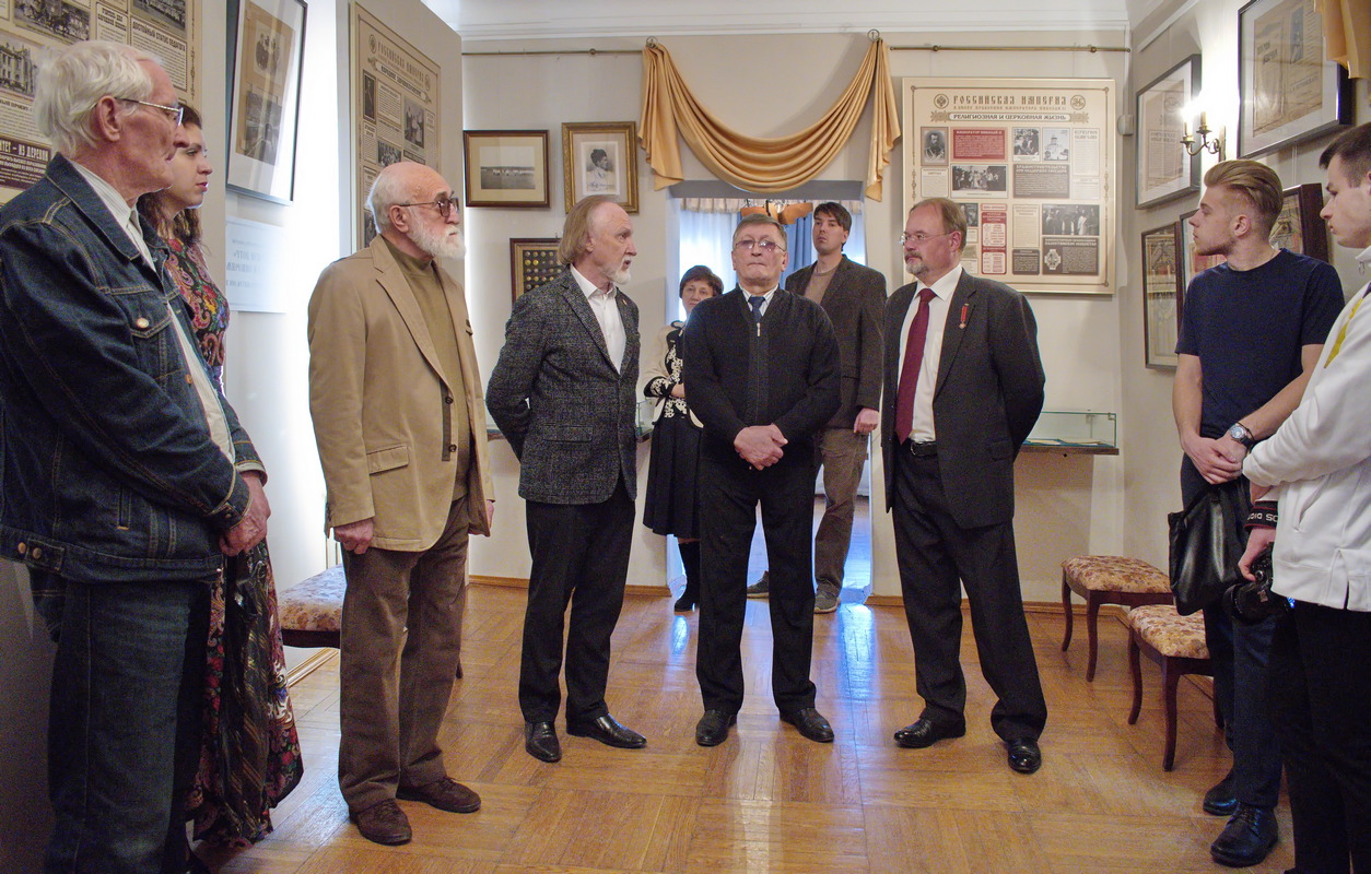 Накануне перехода Музея имени И.С. Никитина на особый режим работы, связанный с угрозой распространения новой коронавирусной инфекции на территории Воронежской области в Здании мещанской управы прошла презентационная экскурсия по выставке. На ней речь шла не только о самом выставочном проекте и об экспонатах, но и об исторических фактах предопределивших смену государственного строя в России и о Гражданской войне. К большому сожалению научных сотрудников Музея имени И.С. Никитина, выставку смогла увидеть только одна группа посетителей и поэтому в ближайшее время будет подготовлена онлайн-трансляция экскурсии по этой временной экспозиции. Место, день и время трансляции будет объявлено дополнительно на сайте и на страницах литературного музея в соцсетях «ВКонтакте» и «Одноклассники». Выставка будет находиться в Здании мещанской управы до 25 сентября.