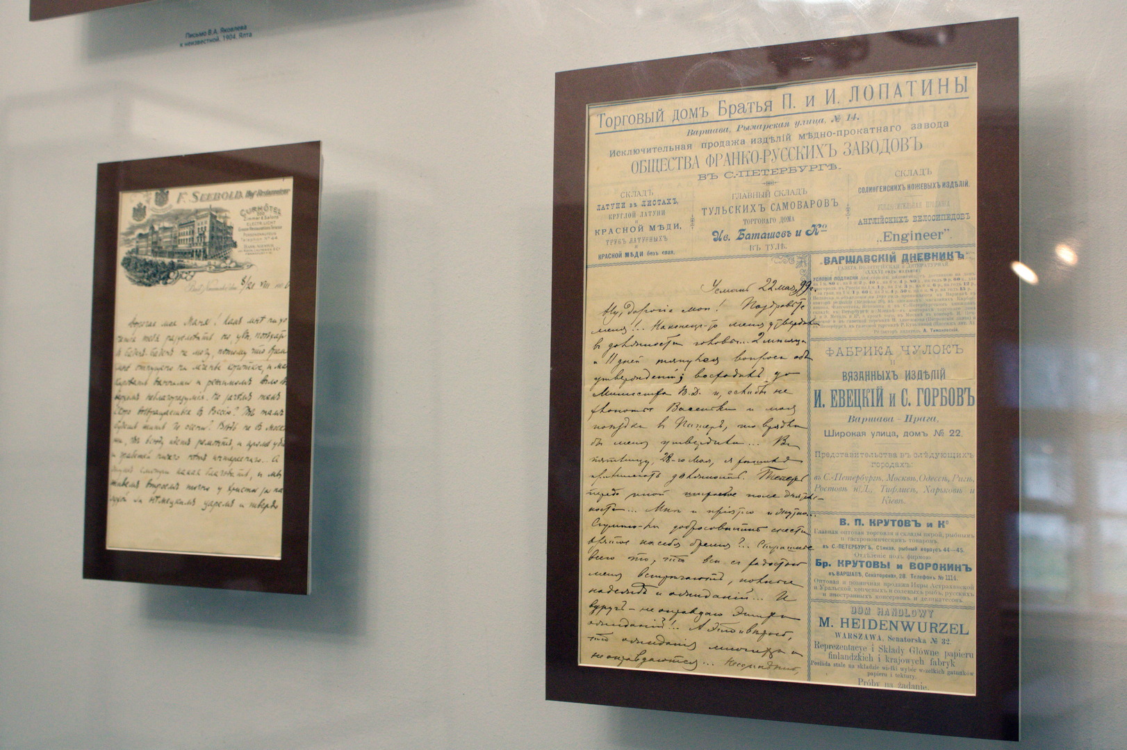 Первая часть выставки рассказывает о деловой переписке рубежа XIX — XX веков. Здесь представлены документы административного делопроизводства, официальные телеграммы, распоряжения воронежских поэтов и писателей, их окружения и деловых партнёров. Особый интерес представляют письмо журналиста А.В. Старчевского к поэту И.С. Никитину, записка руководителя Московского художественного театра К.С. Станиславского в дирекцию, письменное обращение главного редактора журнала «Новый мир» А.Т. Твардовского к жене Осипа Мандельштама – Надежде Яковлевне. Далее в экспозиции показывается история дизайна письма, особенности декорирования текста иллюстрациями и авторскими рисунками. Ярким примером подобного оформления служат письма дочери воронежского писателя А.И. Эртеля, а также художника и основателя «Московского салона» В.А. Яковлева к неизвестной особе.