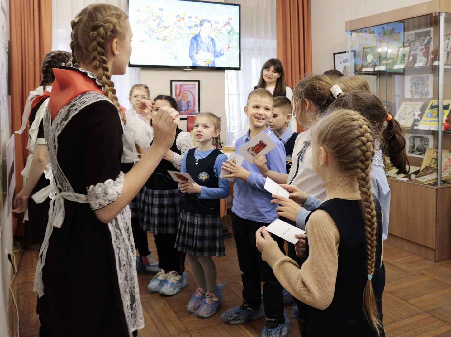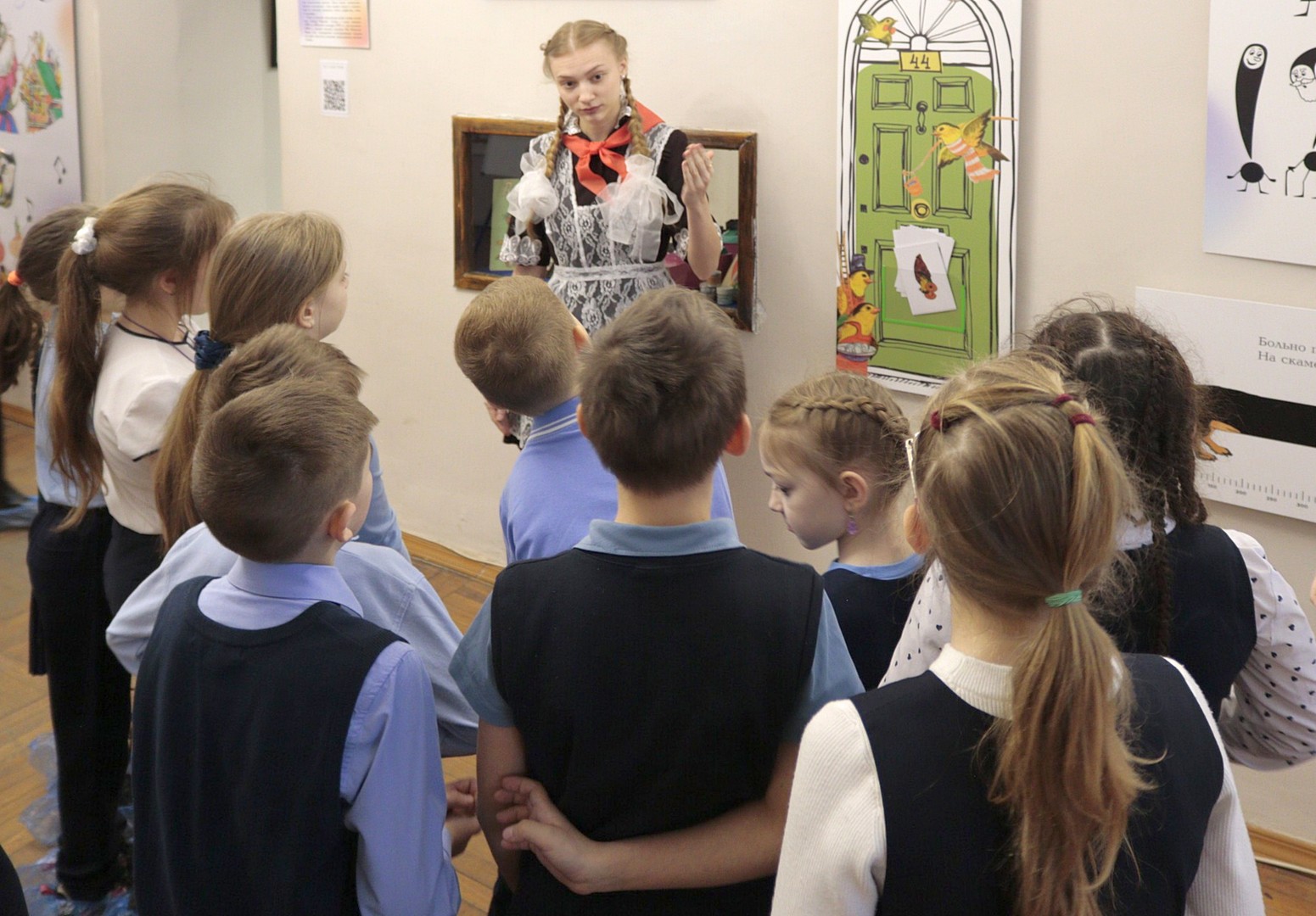 Прежде, чем отправиться на необычные уроки, ребята узнали интересные факты о любимом писателе. Сотрудник музея Юлия Воскобойник рассказала им о творческом пути Самуила Маршака, его заслугах в области детской литературы, а также показала написанное им письмо и редкие издания книг автора.