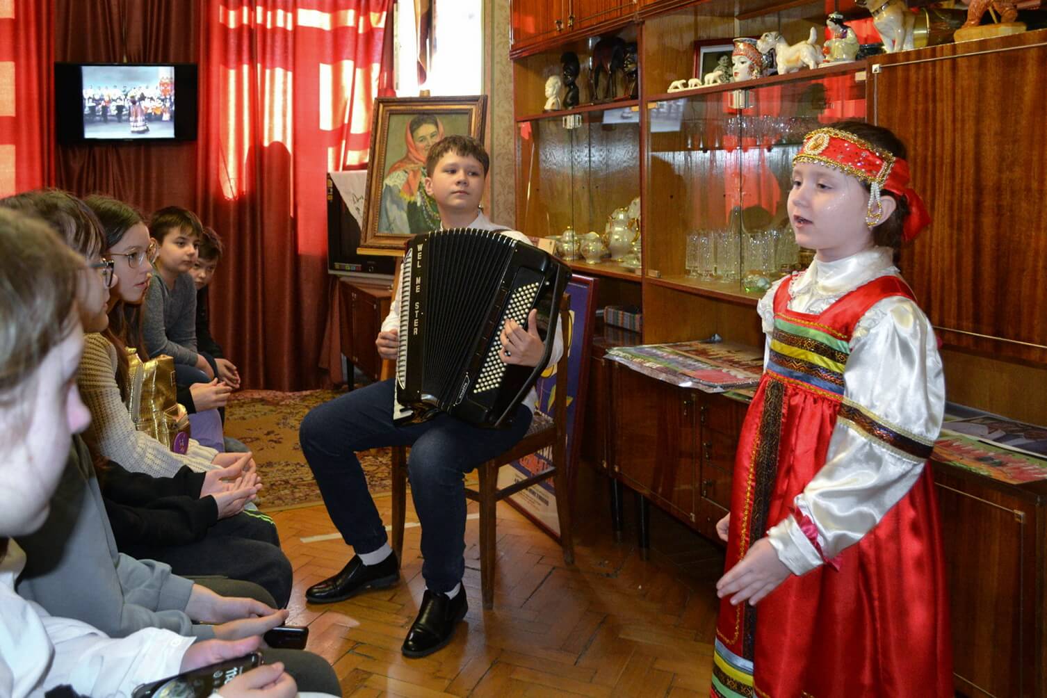 После презентационной экскурсии по выставке прошел концерт учеников ДШИ № 11 имени М. Носырева. Артисты исполнили «Скок-скок», «Как под горкой», «Мы на луг ходили», «Подмосковные вечера» и другие песни. Преподаватель школы Татьяна Воронцова представила каждый из народных инструментов. Отдельные номера, например «Танец» из оперы «Кармен» Ж. Бизе, прозвучали в честь приближающегося праздника 8 Марта.
