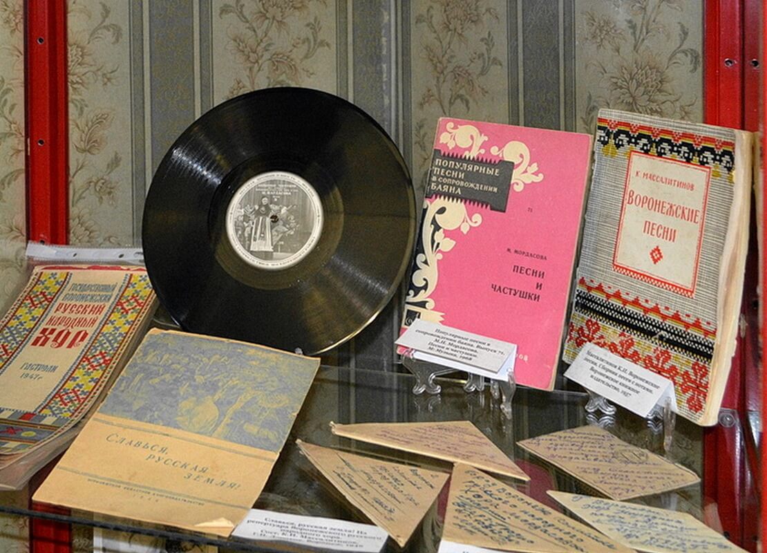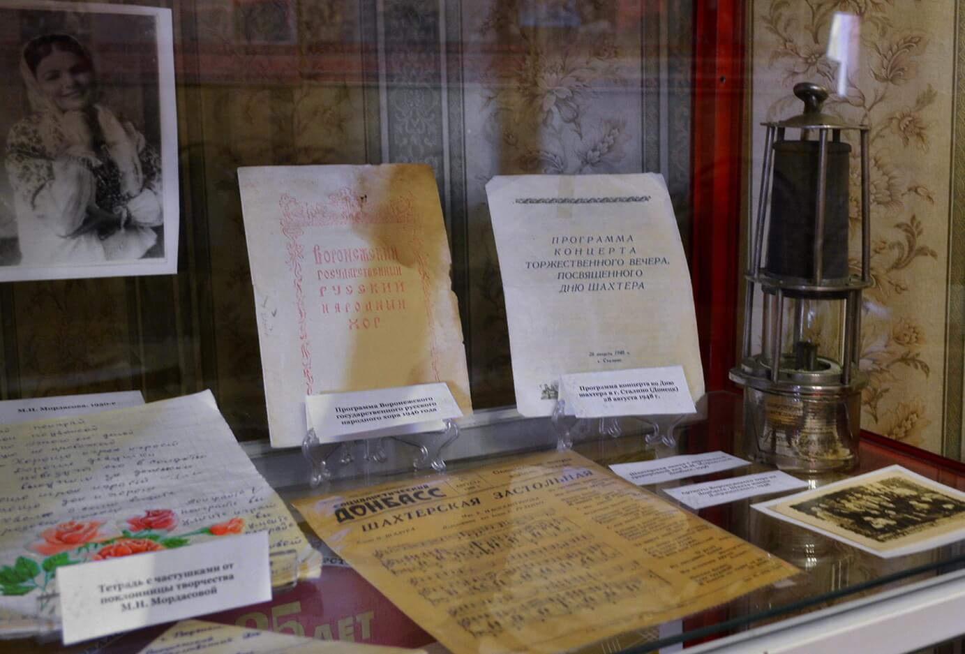 Новая выставка дополняет ее и более полно раскрывает роль народной артистки СССР Марии Николаевны Мордасовой в создании и деятельности Воронежского хора с 1943 по 1972 г. Экспозицию открывают дневники певицы, где указано, что она была самой первой артисткой, принятой в коллектив. Здесь же экспонируется пенсионное дело Марии Николаевны с записями о трудовом стаже. Ознакомившись с ним, сразу становится ясно, почему Мордасова была «своей» для широчайшего круга поклонников. В разделе также представлена фотография артистки с сельскими тружениками. Центральная тема выставки – письма для частушечницы на адрес Воронежского хора: военные «треугольники», и отправленные в конвертах, а также открытки разных лет. Здесь можно увидеть тексты частушек с просьбой спеть их на сцене и отзывы коллег о мастерстве Марии Николаевны. Выставку дополняют книжные издания, афиши и грампластинки, выпущенные к 25, 60, 70 и 75-летию Воронежского хора.