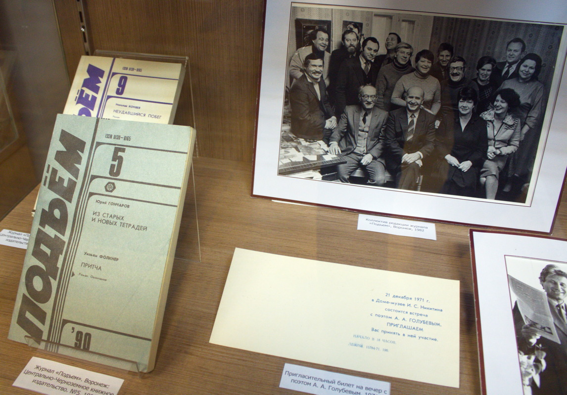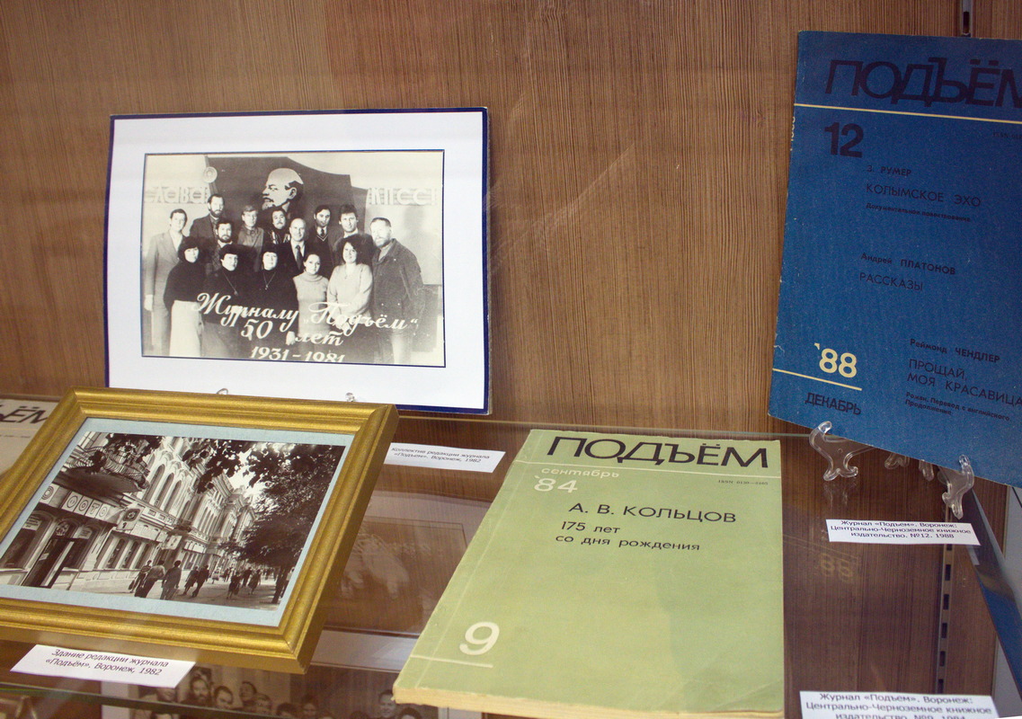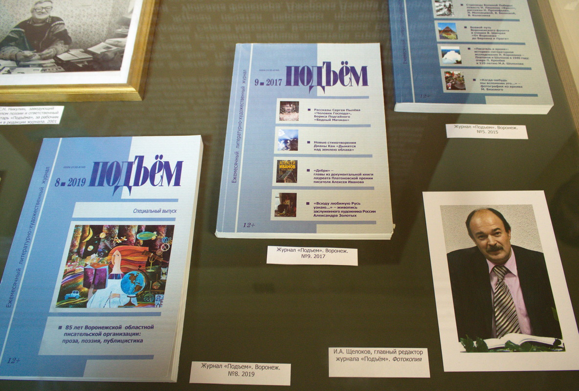 14 октября в Здании мещанской управы Музея имени И.С. Никитина открылась выставка, посвященная старейшему воронежскому литературному журналу «Подъём», празднующему в этом году свой 90-летний юбилей. В презентационной экскурсии главный научный сотрудник музея Ольга Дворядкина рассказала о том, как создавался журнал, о наиболее популярных публикациях художественных произведений воронежских писателей, впервые появившихся на страницах «Подъёма», об интересных и популярных рубриках журнала. В разные годы здесь печатали свои произведения Максим Подобедов, Ольга Кретова, Борис Песков, Владимир Кораблинов, Николай Задонский, Юрий Гончаров, Анатолий Жигулин. Литературно-критические материалы «Подъёма» публиковались под разными рубриками: «Критика», «Далекое – близкое», «Театральные заметки», «Литературная хроника», «Экспериментальная проза». Особое внимание в экскурсии уделялось и оформлению журнала, сильно менявшемуся за 90 лет существования. Столь большая коллекция номеров «Подъёма» из фондов Музея имени И.С. Никитина была представлена на выставке впервые. Выставка будет работать до 21 марта 2022 года.
