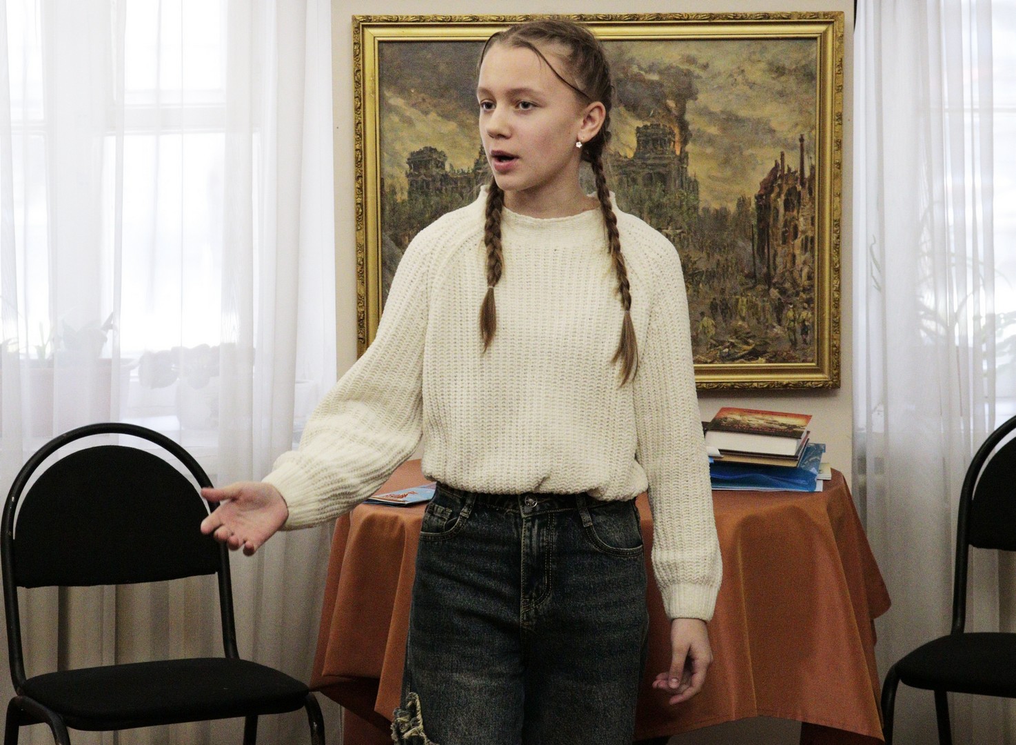 Аккомпанировавший ансамблю второкурсник ВГИИ Денис Недомолкин, также порадовал гостей отдельным номером, сыграв на баяне «Вальс в городском саду», который, возможно, в лихие годы звучал в окопах, подбадривая солдат. Проникновенно и очень артистично стихотворения о войне прочитали учащиеся театрального отделения Детской школы искусств №1 Александра Архипова и Юлия Фирсова.