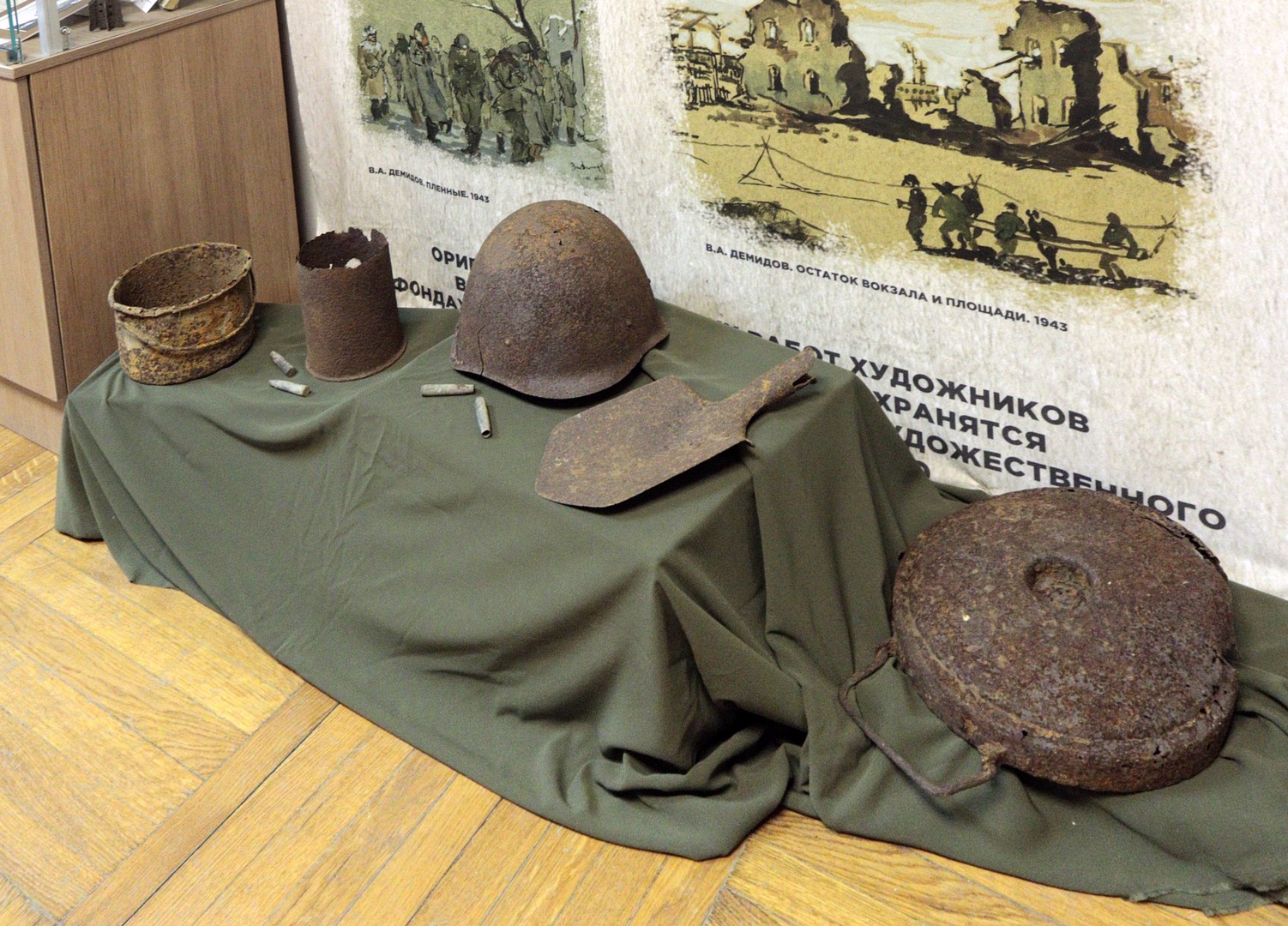 Создатели выставки наполнили ее деталями, которые помнят те страшные для страны годы – это уникальные находки, обнаруженные во время раскопок: каски, снаряды, гильзы, котелки и другие предметы окопного быта. Они делают пространство экспозиции особенно атмосферным.