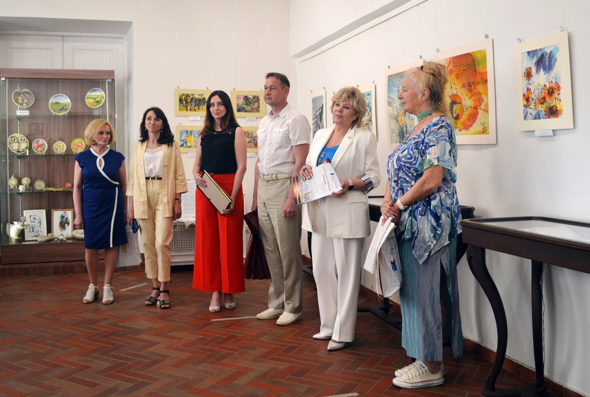 Гостями церемонии открытия стали представители общественных объединений и бизнес – сообщества Воронежской области, а также учащиеся Михайловского кадетского корпуса. С приветственным словом выступила директор Музея имени И.С. Никитина Светлана Деркачева. Она подчеркнула важность и необычный формат совместного проекта. Музеи связывает более 5 лет дружбы и творческого взаимодействия, а выставка лишь подтверждает, что впереди ждут новые формы сотрудничества. Затем к собравшимся обратились заведующая отделом межмузейных коммуникаций музея «Арт-Донбасс» Юлия Козурина, заместитель генерального директора по научной работе Донецкого республиканского краеведческого музея Татьяна Фарафонова и её коллега Наталья Бережная. Они выразили большую заинтересованность и готовность к дальнейшей совместной работе. Заместитель директора Музея имени И.С. Никитина Сергей Волков пояснил особенности концепции выставки. Неподдельный интерес вызвали акварели на бумаге и шелке художницы Елены Григорьевой «Святогорские мотивы», «Растворяясь в красотах Крыма», «Заповедные места. Каменные могилы», «Стихия цветной воды» и другие. До этого они экспонировались в Германии, США, Хорватии. Елена Станиславовна рассказала о своих работах и подарила музею-усадьбе Д.В. Веневитинова акварель «Вечер возле реки Кальмиус». В другом разделе выставки представлены изделия донецких мастеров декоративно-прикладного искусства. Их работы неоднократно экспонировались на международных фестивалях народного творчества. Завершилась торжественная церемония литературно-музыкальной гостиной в каминном зале музея. Выставка продлится до 4 сентября.