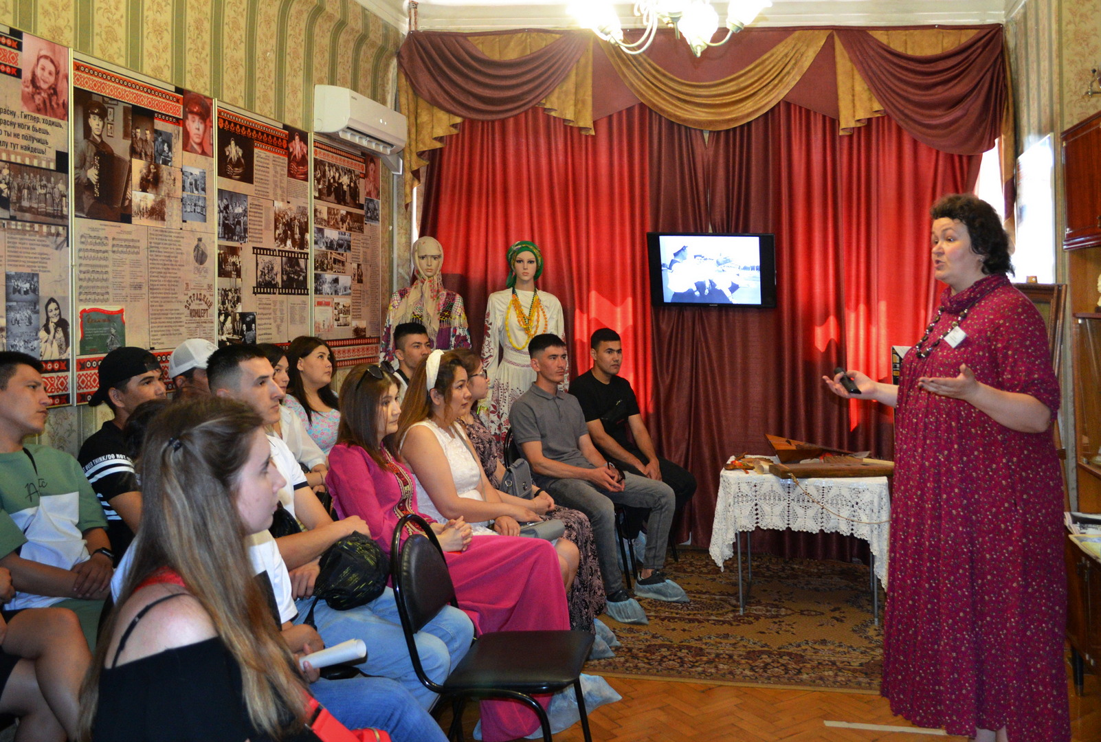 На открытии выставки побывали студенты из Туркменистана гуманитарного факультета Воронежского педуниверситета. Они познакомились с музеем и увидели кадры кинохроники из жизни М.Н. Мордасовой, узнали, что такое частушка и матросский танец «Яблочко». Ребята принимали активное участие в мероприятии: выполняли задания экскурсовода, дискутировали и задавали вопросы, а также представили свои традиционные народные костюмы, рассказали о туркменских музыкальных инструментах: дутаре, гопузе. В завершение встречи коллекцию музея пополнил новый сувенир – ковровая сумочка ручной работы. Выставка продолжит свою работу до 30 декабря.