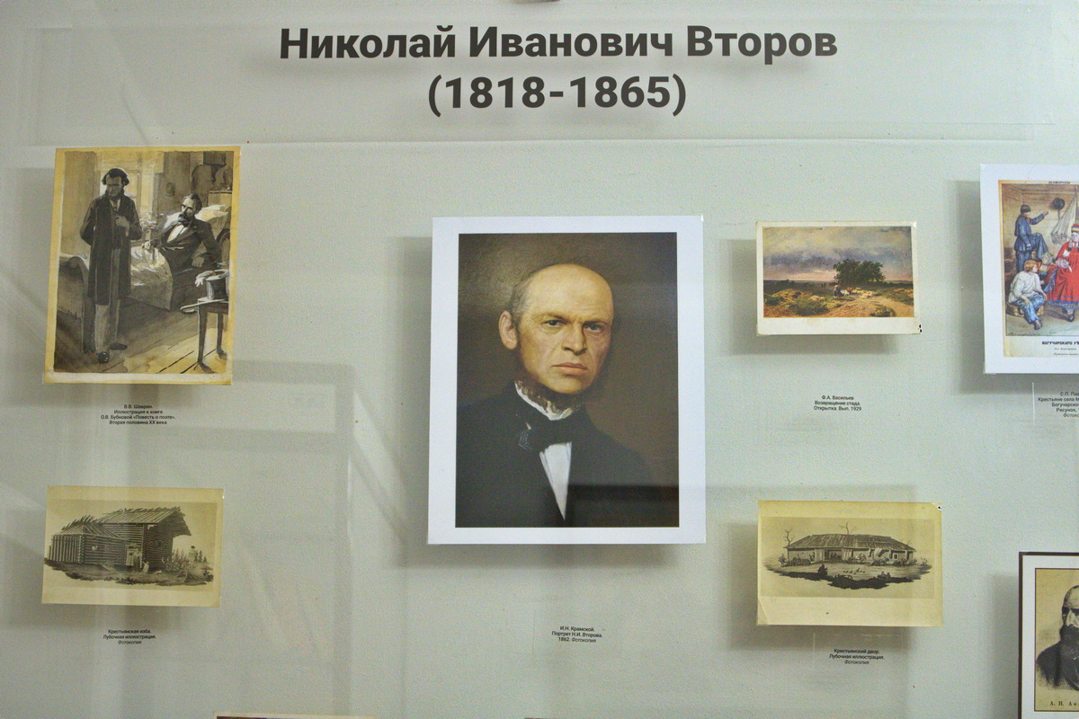 Первый раздел выставки посвящён основоположнику воронежской этнографии Николаю Ивановичу Второву, ставшему с 1849 г. советником губернского правления. Второв сумел вокруг себя организовать литературный и историко-этнографический кружок, который сыграл важную роль в развитии культурной жизни Воронежа. Участники «Второвского кружка» активно занимались краеведческими изысканиями, выявляли и изучали памятники воронежской истории, этнографии, фольклора. В кружок входили: М. Ф. Де-Пуле, П. В. Малыхин, С. П. Павлов, А. Р. Михайлов, И. А. Придорогин, М. Б. Тулинов и др. Особое место занимал в кружке поэт И. С. Никитин. Николай Иванович и его друзья сделали многое для популяризации Воронежской этнографии в местной и столичной печати. Так, с 1856 г. выходит «Памятная книжка Воронежской губернии». Совместно с художником С. П. Павловым Второв составляет альбом крестьянских типов и костюмов Воронежской губернии с историко-этнографическим очерком и описанием рисунков. Альбом частично опубликован в «Русском художественном листке». В целом деятельность Н.И. Второва и членов его кружка во многом определила развитие воронежского краеведения во 2-й половине XIX в.