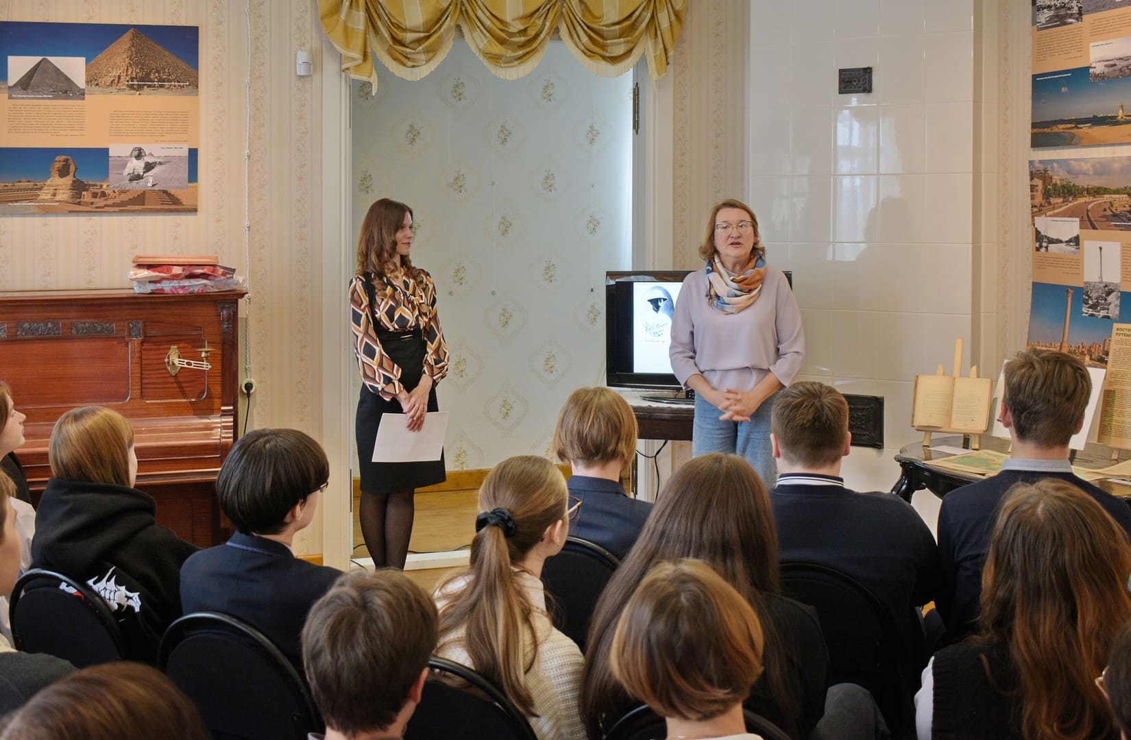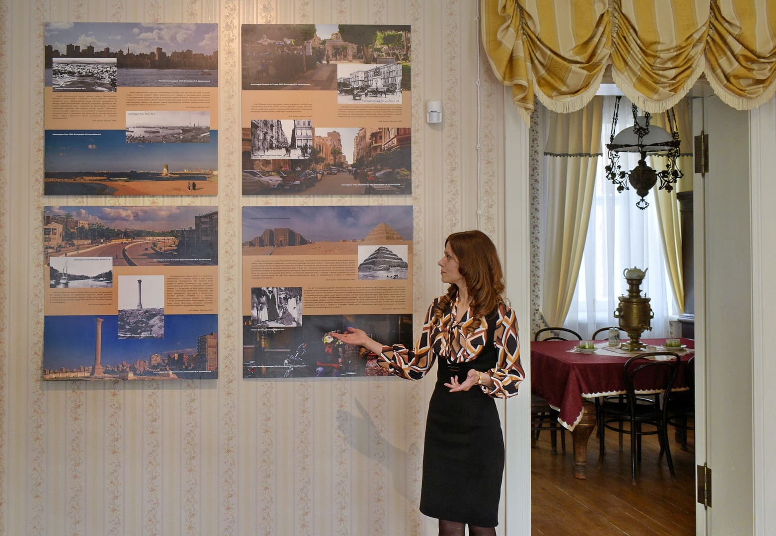 Открыла выставку директор Ефремовского Дома-музея И.А. Бунина Светлана Иванова. Она подчеркнула важность международных и межрегиональных культурных связей. Презентационную экскурсию провела куратор проекта, старший научный сотрудник Музея имени И.С. Никитина Вероника Щукина. Речь шла о поездках Бунина в «страну пирамид». Вероника Александровна проанализировала египетские мотивы в произведениях писателя и влияние африканской культуры на творческое становление русского классика. С видеообращением из Каира выступила фотохудожник Елена Архангельская. Она рассказала о своей кропотливой работе над необычным творческим проектом.