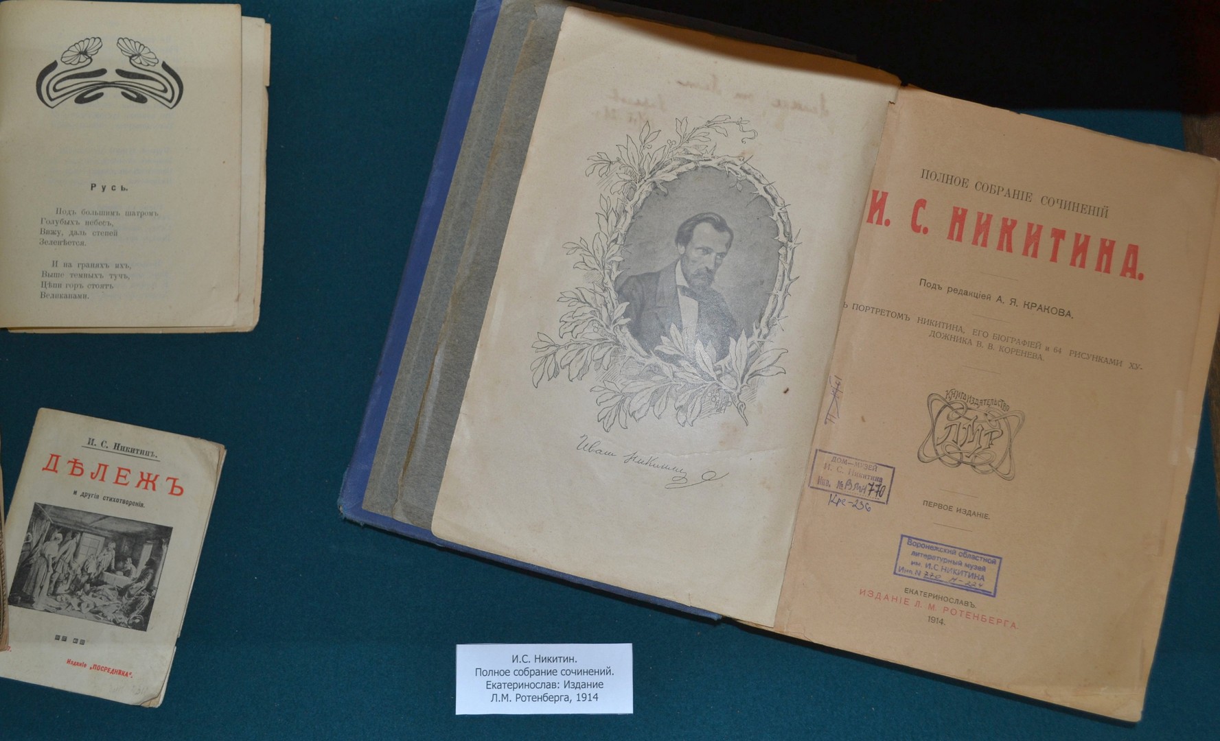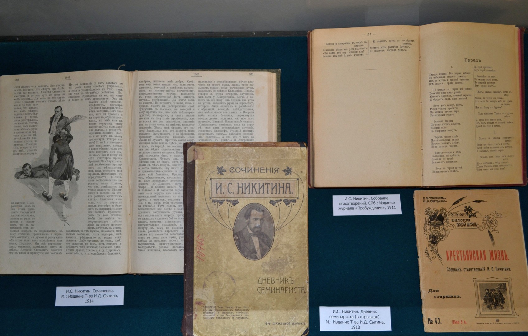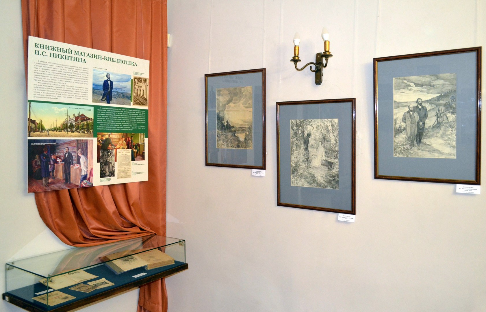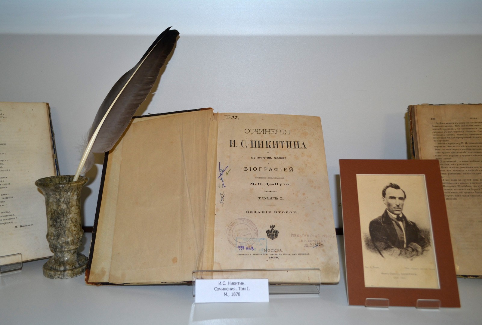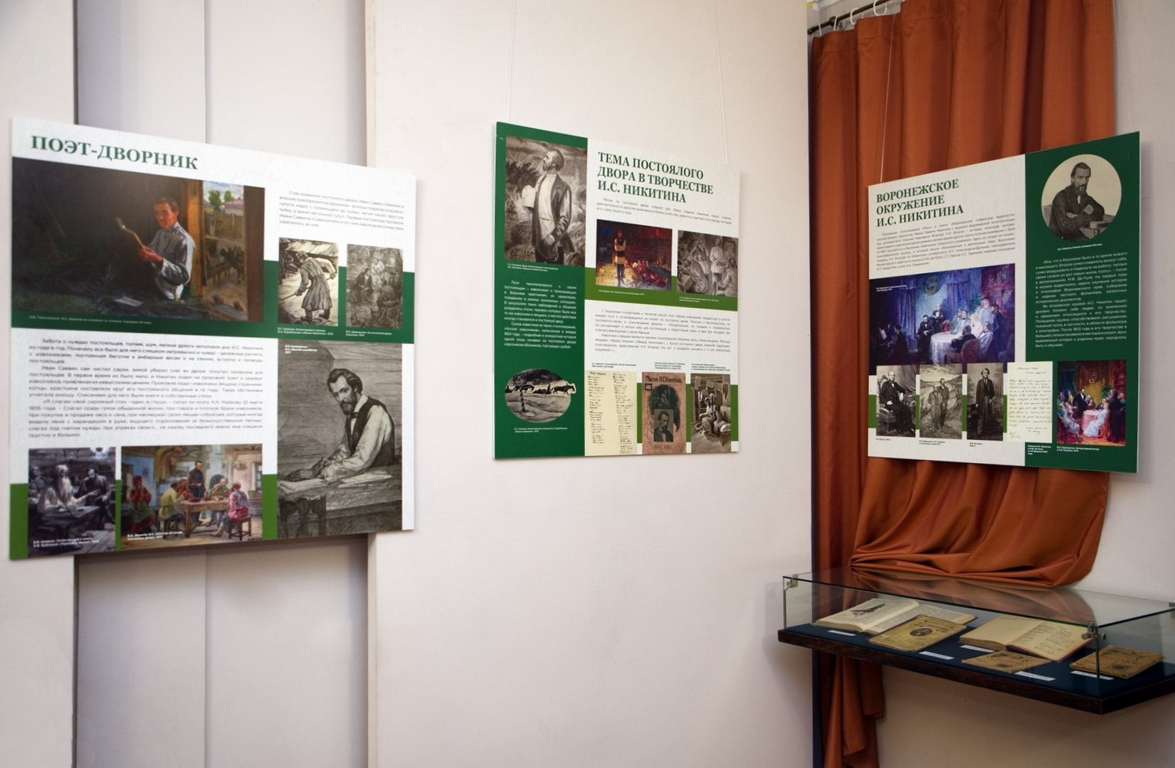 Пространство экспозиции наполнено предметами из фондовой коллекции ЛитМузея. Представлены ценные книги – прижизненные и посмертные издания произведений Ивана Саввича, сборники для детей и старших читателей, ноты романсов на стихи автора. Среди них особенно выделяется «Ухарь-купец», получивший широкую народную славу и не теряющий интерес музыкантов и исполнителей по сей день. Выставка богато проиллюстрирована графическими работами Василия Криворучко. На них изображен Никитин во время работы, прогулок, деловых и дружеских встреч. Дополняют экспозицию информативные планшеты, рассказывающие о жизни и творчестве поэта, его воронежском окружении, постоялом дворе и сбывшейся мечте – собственном книжном магазине-библиотеке.