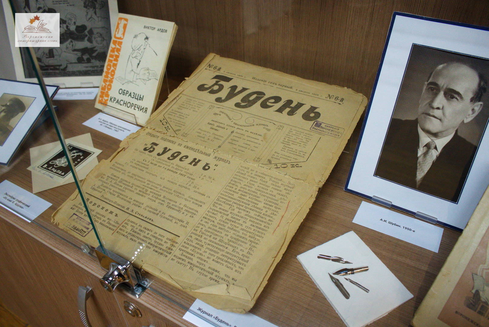 В Здании мещанской управы Музея имени И.С. Никитина прошло торжественное открытие выставки «Железное перо воронежских писателей первой половины ХХ века». Она состоит и нескольких тематических частей.