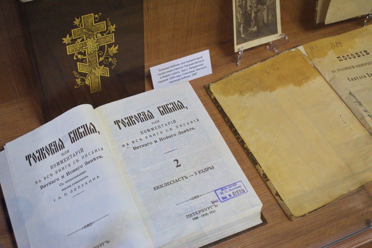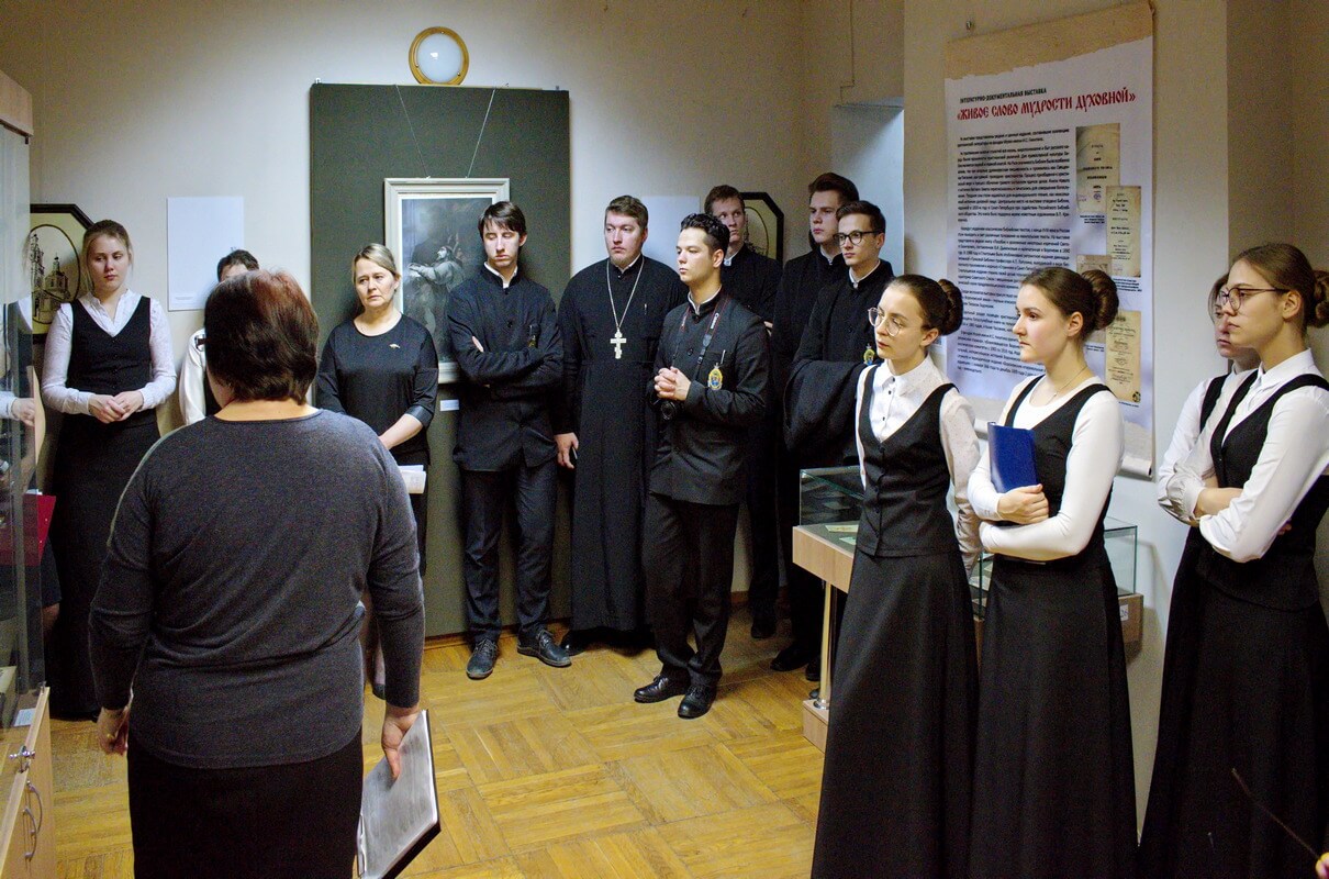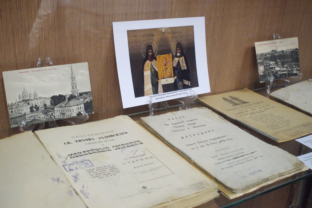 В Здании мещанской управы, в преддверии Пасхальных праздников, презентовали литературно-документальную выставку «Живое слово мудрости духовной», которая призвана познакомить воронежцев с редкими и ценными изданиями, составившими коллекцию христианской литературы из фондов музея. Вниманию зрителей были представлены более пятидесяти книжных памятников XVIII – XIX вв., различные толкования на евангельские тексты, христианская художественная литература, почтовые открытки начала XX века – поздравления с Рождеством Христовым и с праздником Святой Пасхи. Выставку открыл хор студентов регентского отделения Воронежской духовной семинарии под руководством Екатерины Чертовой. Заведующая выставочным отделом Ольга Уразова отметила, что идею создания проекта подсказала выставка из собрания Центрального музея древнерусской культуры и искусства имени Андрея Рублёва «Совершися книга сия…», которую здесь принимали осенью 2015 года. Гостями Музея стали студенты Воронежской духовной семинарии. Для них старший научный сотрудник Маргарита Якович провела презентацию выставочной коллекции. Интерес у публики вызвал рассказ о рукописных книгах XVIII – XIX веков, содержащих молитвы, религиозно-этические поучения, прозаические тексты и стихотворения на религиозные темы: «Разговор о совершенстве веры христианской» с владельческим инскриптом «Из библиотеки игуменьи Архелаи, быв. Баронессы Шлиппенбах, умершей в 70-х г. XIX века». Привлекла внимание и рукописная книга «О страданиях Христа» (1795 г.), оформленная в красивый кожаный переплет с бронзовыми застежками. Особое место в выставочном пространстве отведено Библии. Гордостью представленной коллекции стал экземпляр, подаренный музею известным художником В.П. Криворучко. Библия издана в 1820-м году в Санкт-Петербурге при содействии Российского Библейского общества. Издание содержит Книги Священного Писания Ветхого и Нового Завета. Отдельный раздел выставки посвящен толкованиям Библии, богослужебным изданиям, литературе о святых, напечатанных на церковно-славянском языке и оформленных в традициях церковной печати XIX в. О некоторых экспонатах, книгах православных духовных писателей «Разные размышления преосвященного Тихона епископа Воронежского и Елецкого», Константина Леонтьева «Из жизни христиан в Турции» было рассказано более подробно. Также семинаристов познакомили с дореволюционными выпусками журнала «Воронежская старина», «Воронежские епархиальные ведомости. Большое любопытство у публики вызвал раздел выставки об иноязычной христианской литературе — молитвенник на польском языке, изданный в 1883 году и внушительных размеров англиканская Библия, изданная в XIX веке. Также разговор шел о старинных фотографиях церквей Воронежа: Ильинской, в которой крестили будущего поэта А.В. Кольцова, Введенской, где по преданию был крещен И.А. Бунин, Чугуновской церкви, которую упоминал в своей биографии писатель А.П. Платонов: «Колокол Чугунной церкви был всею музыкой слободы, его умили¬тельно слушали в тихие летние вечера старухи, нищие и я…». В заключении научный сотрудник познакомила гостей с подлинными почтовыми открытками, выпущенными в России начала XX века на христианскую тематику – поздравления с Рождеством Христовым и с праздником Святой Пасхи. Выставка будет работать в Здании мещ