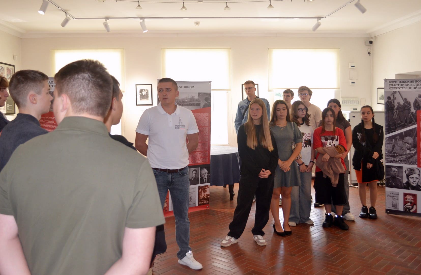 28 августа в Музее-усадьбе Д.В. Веневитинова состоялось открытие нового выставочного проекта, приуроченного к 80-летию Победы в Великой Отечественной войне. Он включает экспозицию «Курская дуга. Сражение под Прохоровкой» из фондов Государственного военно-исторического музея-заповедника «Прохоровское поле» и выставку «Память нашей Победы» Литературного музея им. И.С. Никитина. Первыми зрителями стали учащиеся 8-9 классов Новоживотинновской СОШ.