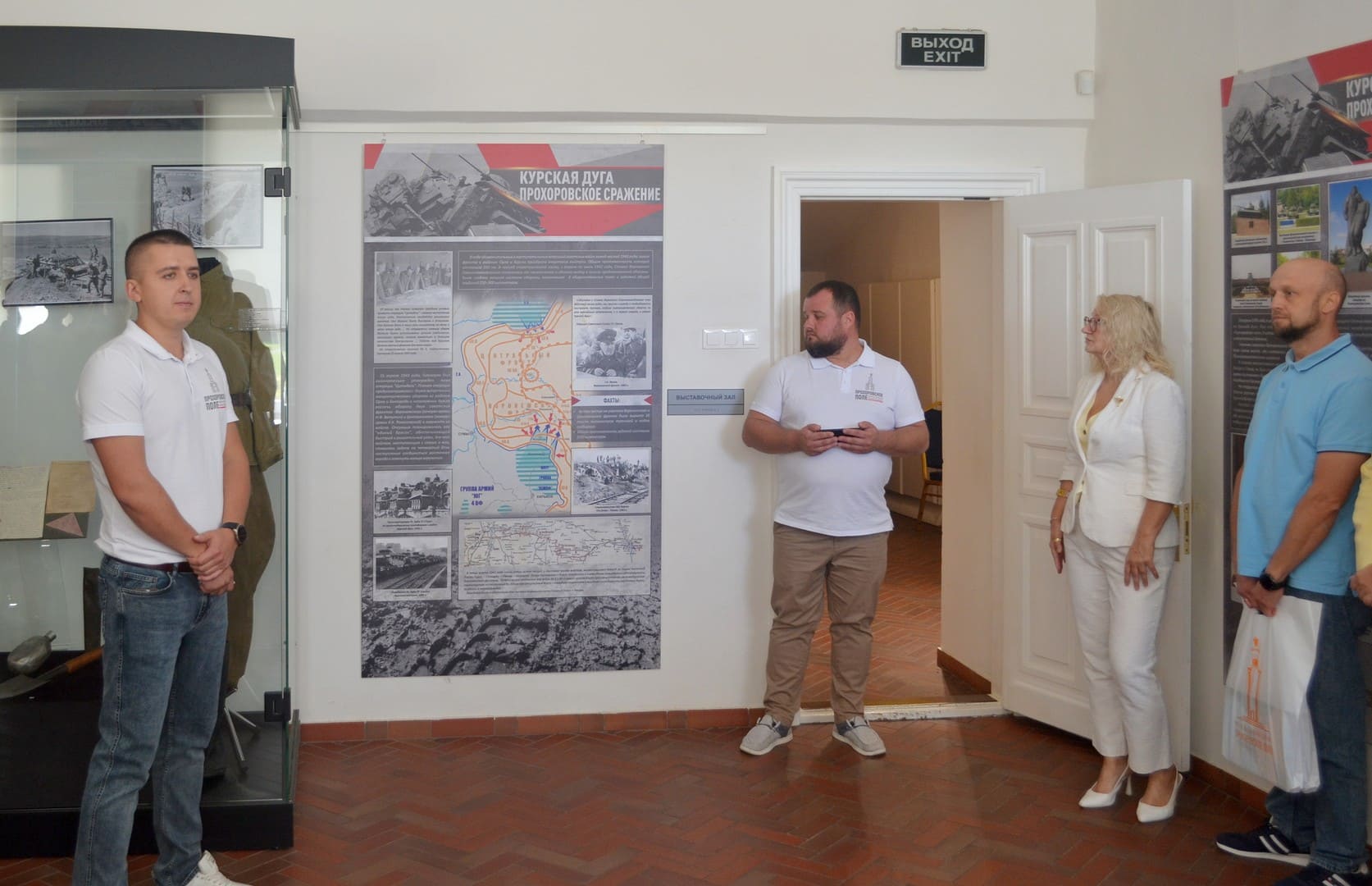 Затем специалист по экспозиционной и выставочной деятельности Музея-заповедника «Прохоровское поле» Николай Масалов провел презентационную экскурсию по выставке «Курская дуга. Сражение под Прохоровкой». Это одно из крупнейших танковых сражений, которое произошло 12 июля 1943 года на южном фасе Курской дуги и предопределило исход всей Курской битвы.