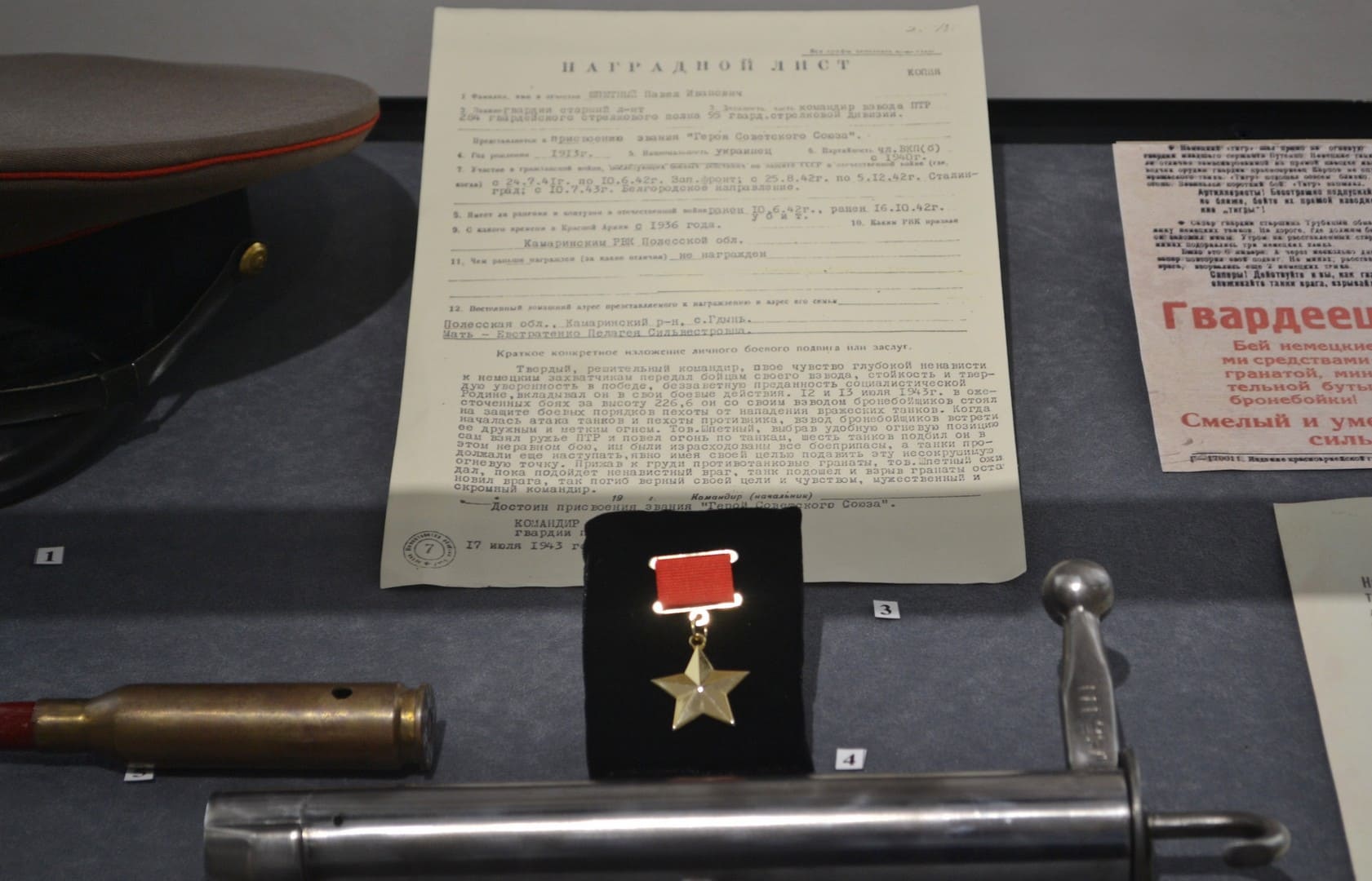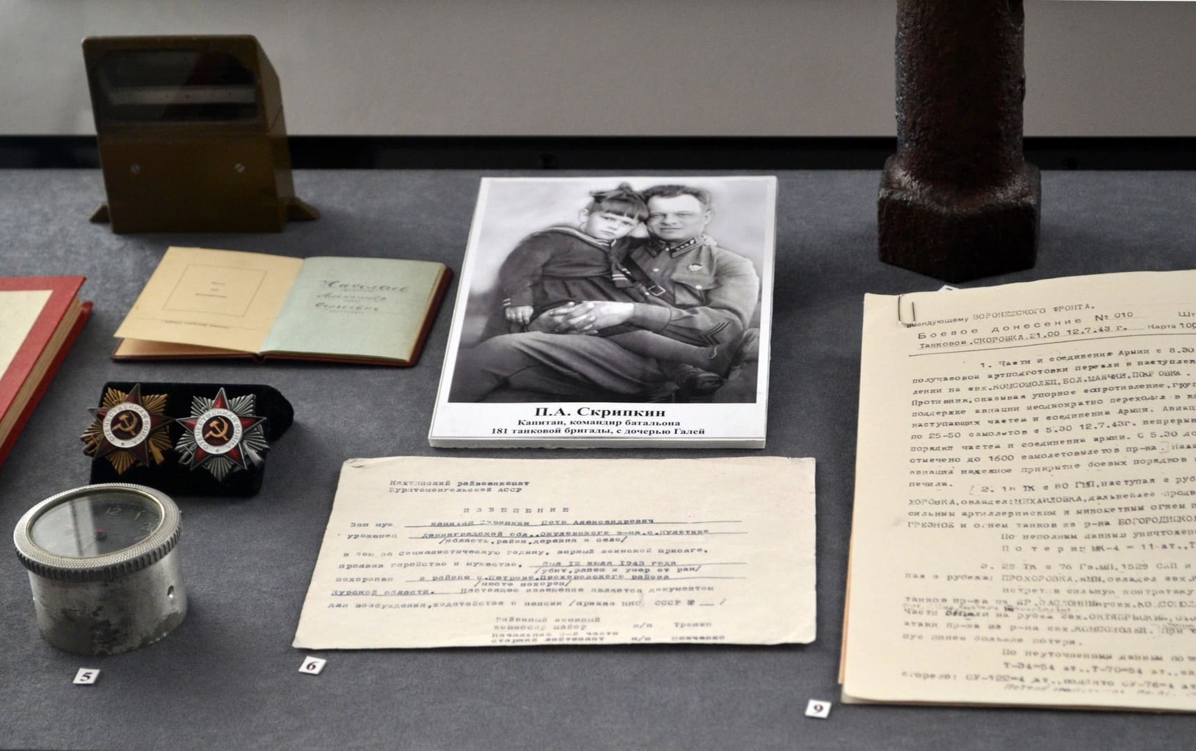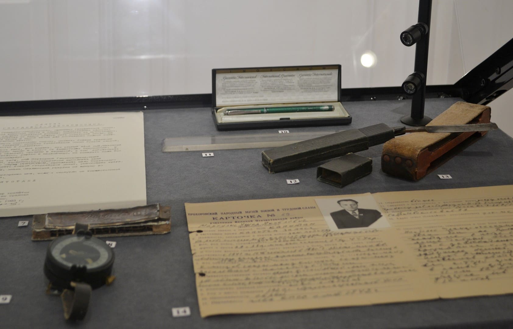 В экспозиции представлены предметы, рассказывающие о героях, подвигах и ключевых моментах танкового сражения под Прохоровкой. Среди них – одежда советских военных, награды, ордена, окопная посуда, эксклюзивные фотографии и документы. Отдельная витрина посвящена подвигу медиков, где можно увидеть их фотографии и личные вещи. Представляют также интерес экспонаты, посвященные строительству железной дороги Старый Оскол – Ржава, которая стала важным звеном фронтовых коммуникаций.
