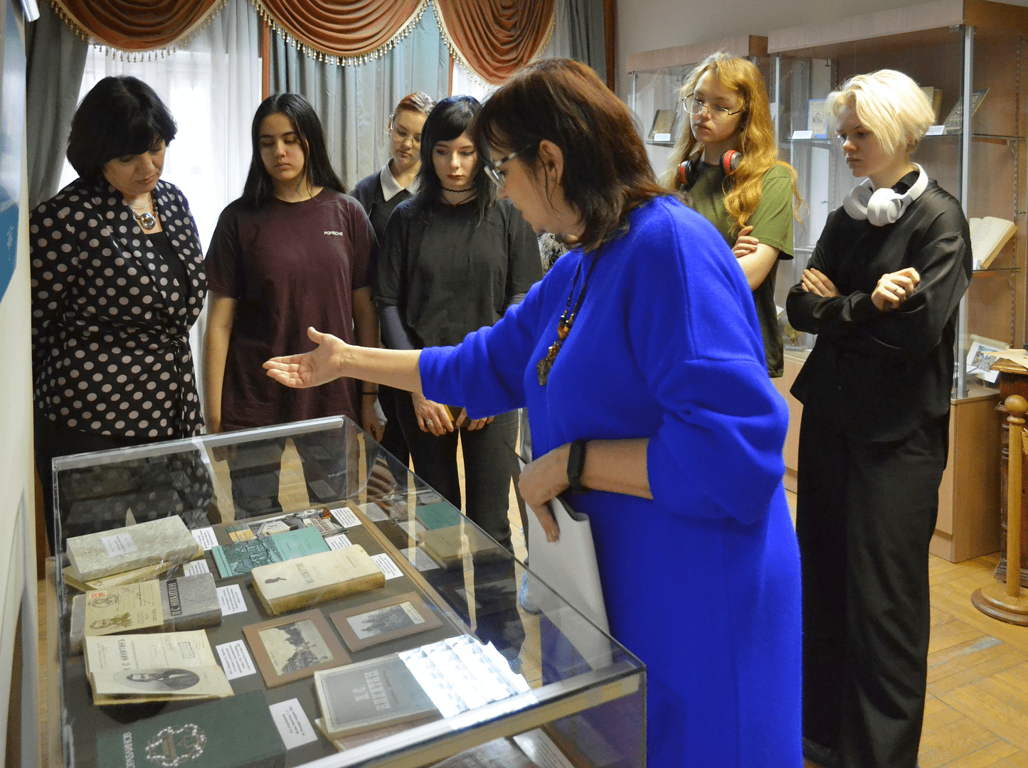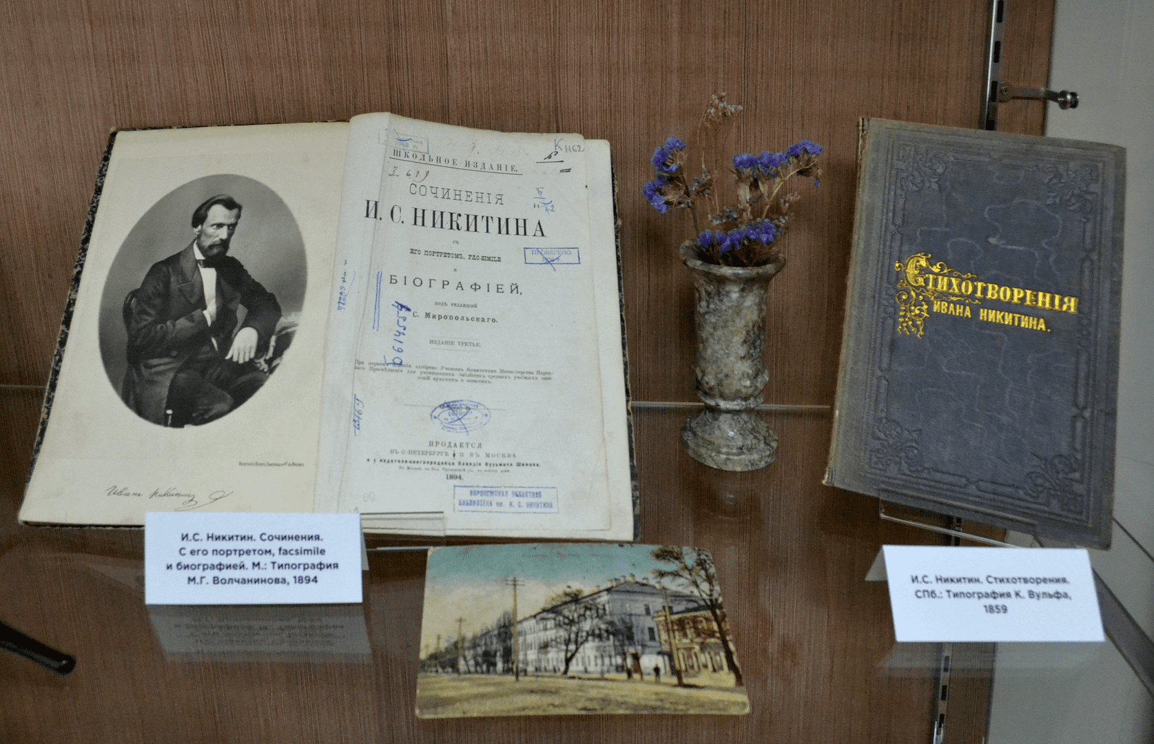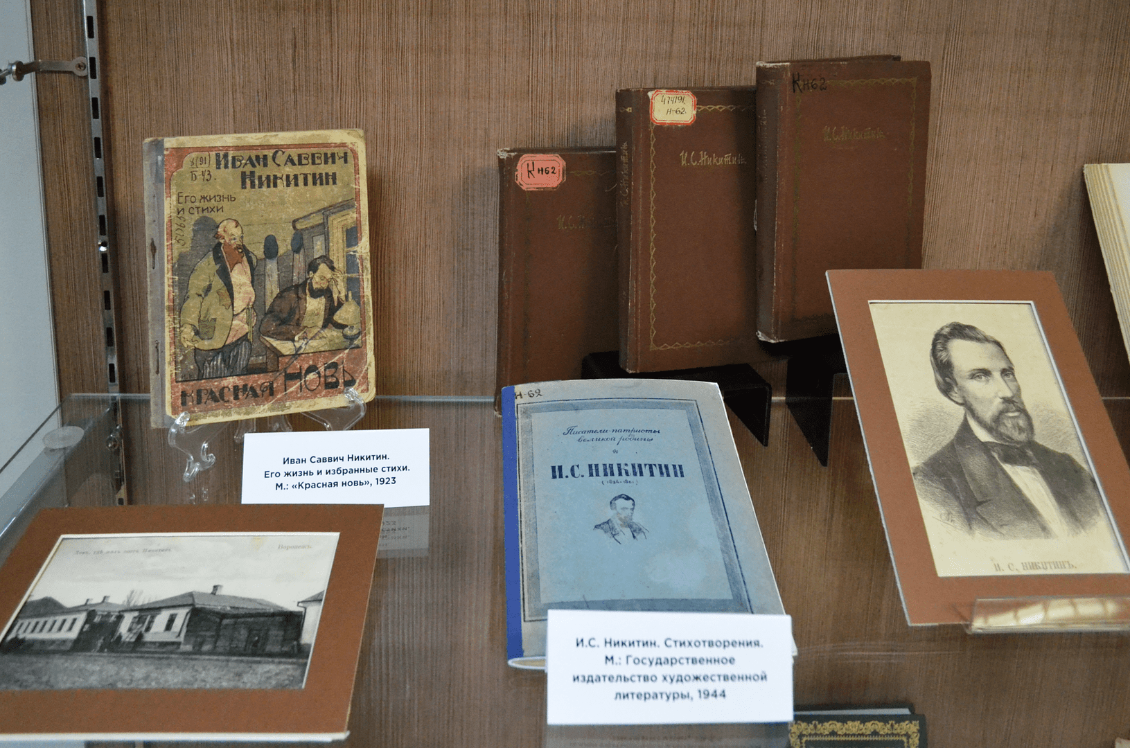 Разговор об Иване Саввиче продолжился в зале, где представлена выставка «Запечатленное никитинское слово». Экспонаты для нее предоставил партнер ЛитМузея – Воронежская областная универсальная научная библиотека им. И.С. Никитина. С экспозицией гостей познакомила заведующая отделом краеведения Никитинки Маргарита Бутина. Она заострила внимание на собрании редких изданий поэта XIX–ХХ веков, литературоведческих исследованиях творчества Ивана Саввича, а также представила редкие прижизненные издания автора: поэму «Кулак» (1858) и «Стихотворения Ивана Никитина» (1859). Особую ценность для зрителей имеет первое посмертное издание сочинений поэта, с его портретом, видом надгробного памятника, биографией, составленное М. Ф. Де-Пуле и опубликованное в 1869 году.