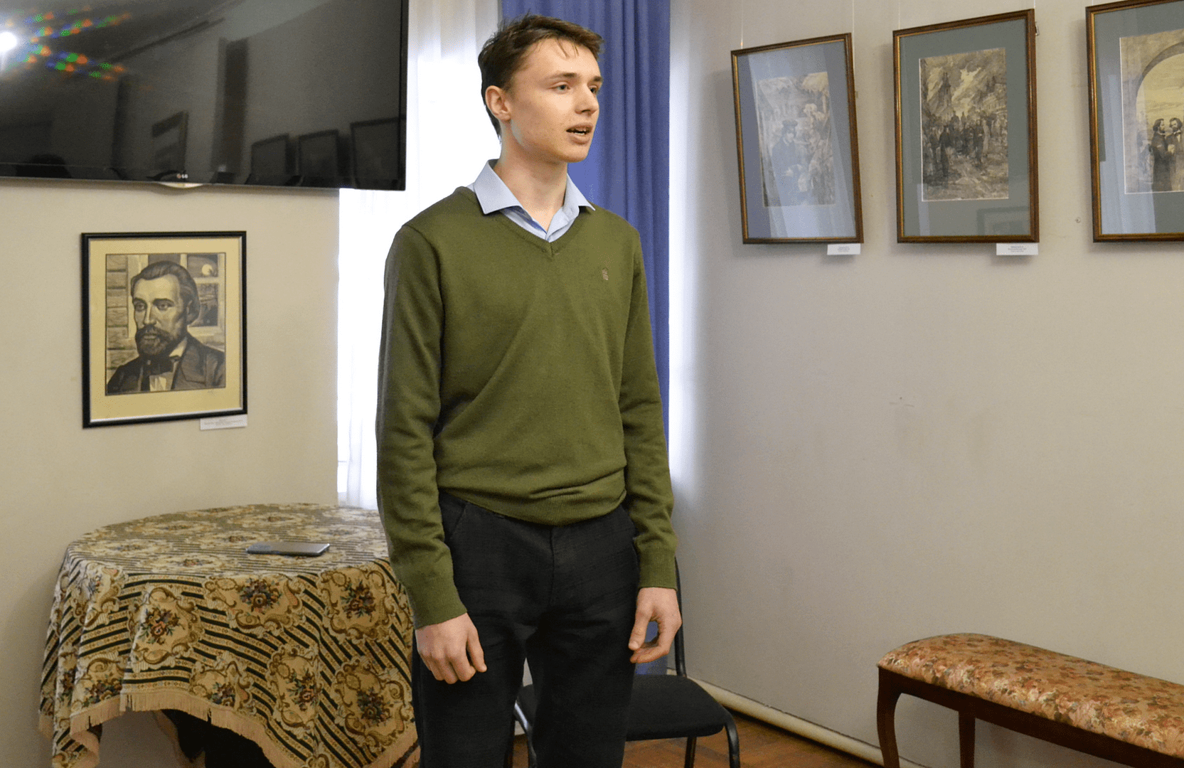 В выставочном зале «Минуты мысли вдохновенной» старший научный сотрудник Жанна Леденева рассказала посетителям о непростой, но богатой на яркие события жизни Ивана Саввича. А затем представила художественные работы из фондовой коллекции Литературного музея. Среди них – картины В.П. Криворучко, С.Д. Легеня, Г.А. Гончарова, сумевших с удивительной точностью и выразительностью передать никитинские образы. Также изобразительная «никитиана» представлена другими известными мастерами: Н.Г. Никифоровым, В.В. Шавриным, Н.Б. Терпсихоровым, О.А. Турбиным, В.В. Владиславским. Особенно интересны довоенные работы педагога, графика, живописца В.А. Жданова.