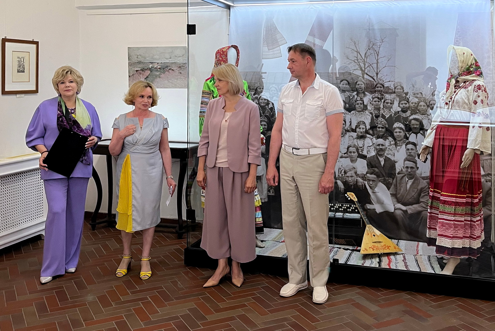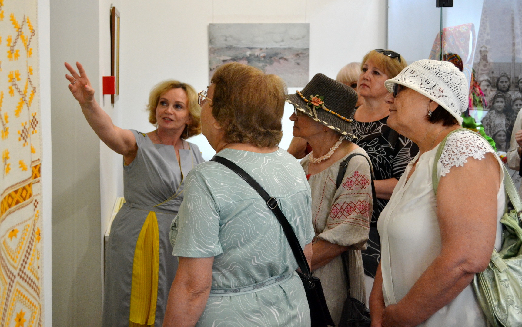 5 июля в Музее-усадьбе Д.В. Веневитинова состоялось торжественное открытие выставок «Степная рапсодия» и «Магия узоров степи Донецкой». С приветственным словом к гостям обратилась директор Музея имени И.С. Никитина Светлана Деркачева, которая отметила многолетний опыт сотрудничества в выставочной деятельности Воронежского литературного музея и Донецкого республиканского краеведческого музея. Затем слово было предоставлено руководителю отдела по культуре администрации Рамонского района Воронежской области Жанне Филатовой. Она подчеркнула важность такого сотрудничества и то, что выставка Донецкого музея вызвала особый интерес у рамонских рукодельниц. Далее заведующая научно-экспозиционным отделом Донецкого краеведческого музея Наталья Бережная провела презентационную экскурсию по выставке «Магия узоров степи Донецкой» и познакомила гостей с работами мастеров декоративно-прикладного искусства Е.А. Журбы, Л.П. Задорожней, Г.П. Коршун. Научный сотрудник литературного музея Ирина Кулешова представила выставку «Степная рапсодия» и рассказала о различных вариантах художественного осмысления степного пространства воронежскими литераторами.