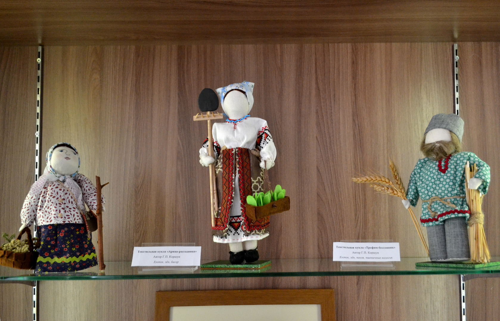 Первый раздел совместной экспозиции представлен редкими рукописными и печатными изданиями А.В. Кольцова и И.С. Никитина, книжными иллюстрациями, почтовыми карточками и уникальными мемориями семьи А.И. Эртеля. Среди наиболее ценных предметов выделяется пробный оттиск гравюры художника В.В. Щербинина к роману И.А. Бунина «Суходол», Второй раздел представлен репродукциями картин воронежских художников из фондов Воронежского художественного музея имени И.Н. Крамского, программками и фотографиями хоровых коллективов Воронежской области, сценическими костюмами народной артистки СССР Марии Мордасовой и инсталляцией, которая образует тематическую фотозону. Третий раздел составляют свадебные рушники, домотканое льняное полотно, образцы художественной вышивки, текстильные куклы из фондов Донецкого республиканского краеведческого музея.