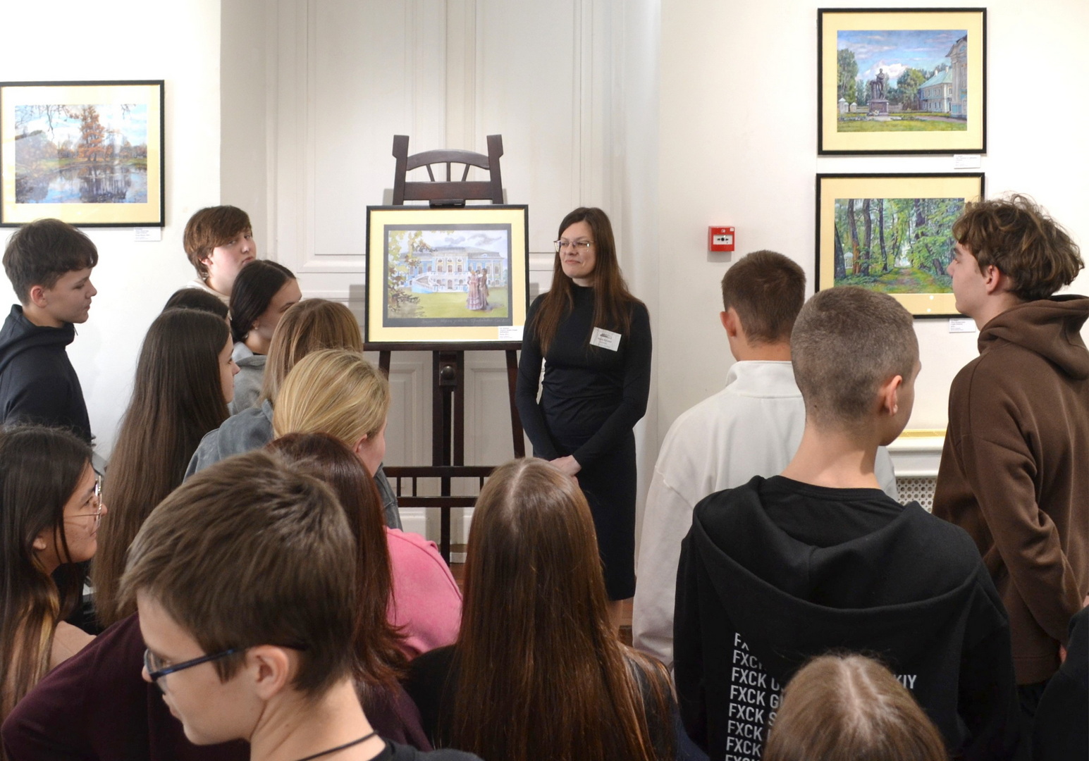 Научный сотрудник музея Ирина Кулешова провела презентационную экскурсию по выставкам. В экспозициях представлены уникальные изобразительные материалы: репродукции старинных планов, чертежей, фотографий усадьбы «Хмелита». Большой интерес у посетителей вызвали живописные работы, выполненные маслом, углём и акварелью современными художниками: О.Б. Чернышевой, С.Г. Чернышевым, В.Н. Лисиновым, Н.И. Чумаковой, Н.В. Чайкой, Т.В. Глуховой, В.П. Рыбаковым, Е.В. Марценюком, Г.А. Улыбиным. Гости узнали о последних владельцах Хмелиты (дворянах Гейден-Волковых), повседневной жизни ее обитателей и особенностях усадебной архитектуры. Особое внимание было уделено книжным изданиям комедии «Горе от ума», известным художникам-иллюстраторам и знаменитым театральным постановкам этой пьесы.