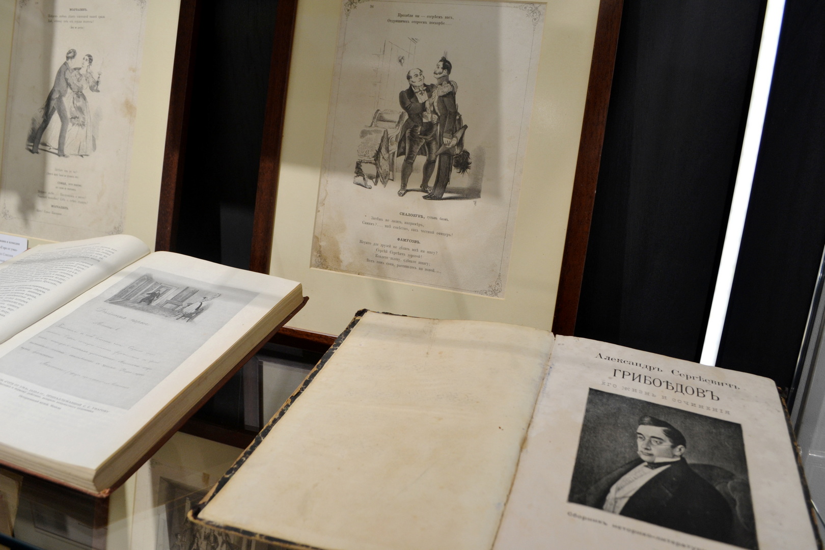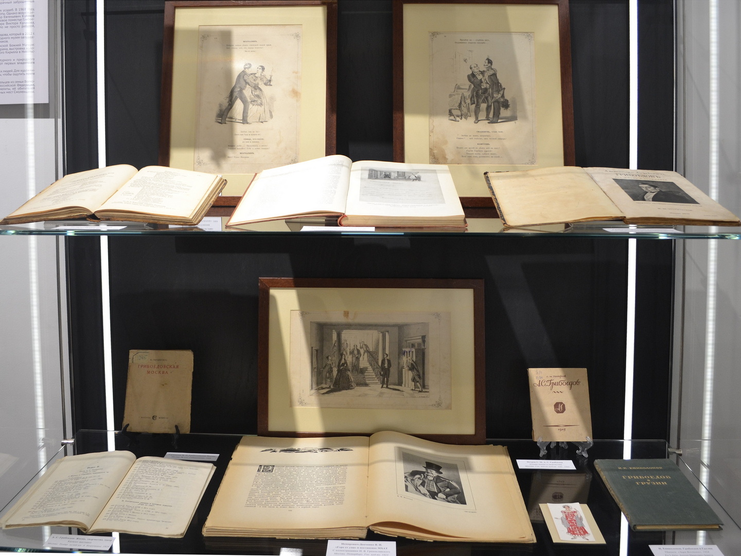 Среди наиболее примечательных экспонатов выделяется роскошное издание «Горе от ума» 1866 года с рисунками русского живописца и графика Павла Соколова. Кроме того, библиографическую редкость представляет издание 1923 года, выпущенное к 25-летней годовщине Московского Художественного театра, в которое вошли статьи В.И. Немировича-Данченко и историка театра Н. Эфроса, посвященные знаменитой постановке «Горя от ума».