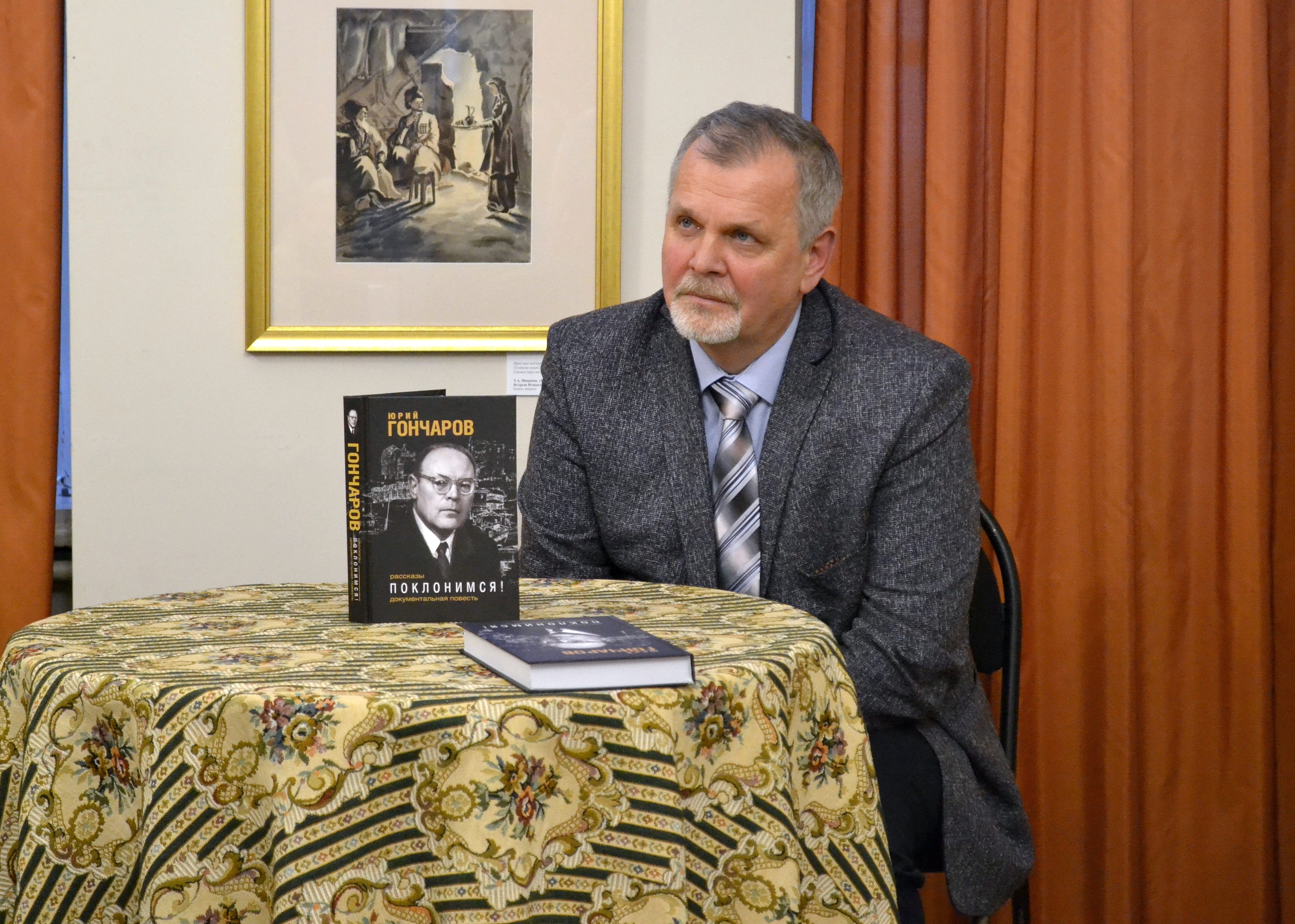 Открывая вечер, журналист, публицист, директор издательского дома ВГУ Дмитрий Дьяков, проникновенно рассказал о жизни и творчестве Юрия Гончарова, его общих идейных взглядах и дружбе с Георгием Баклановым. Юрий Даниилович был непосредственным участником Великой Отечественной войны, едва не погиб под немецким обстрелом, получил серьезное ранение в ногу, и при этом удивительным образом сумел сохранить в себе человеческое достоинство. Именно это качество, проистекающее от веры в высшие нравственные ценности, в неповторимость и индивидуальную значимость каждой отдельной личности стала главной темой в творчестве писателя.